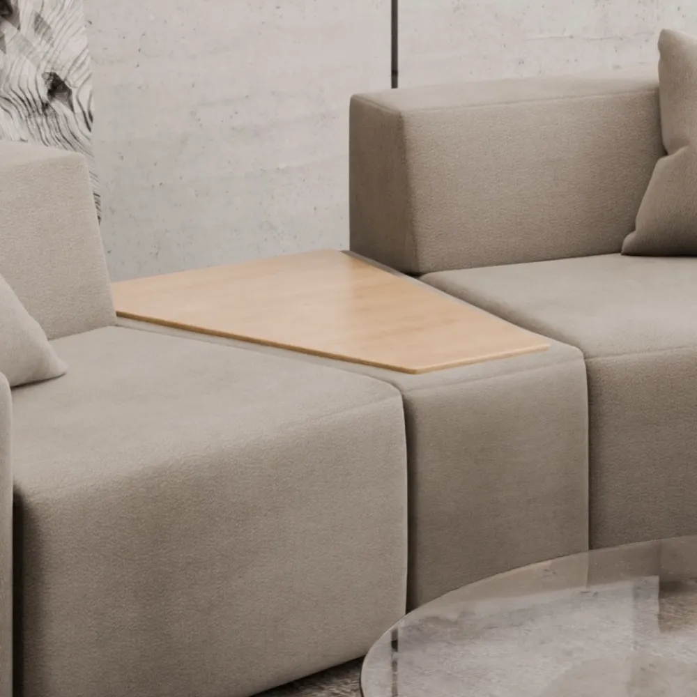 Moduł klin z blatem Enjoy to wyjątkowy element kolekcji mebli modułowych, który pozwala stworzyć narożnik idealnie dopasowany do Twojej przestrzeni. Dzięki solidnym uchwytom typu krokodylki, poszczególne elementy systemu łączą się ze sobą w prosty i stabilny sposób, tworząc funkcjonalny zestaw wypoczynkowy. Nowoczesne, delikatnie zaokrąglone linie i miękka tapicerka nadają meblowi elegancki charakter, a staranne wykończenie sprawia, że będzie on ozdobą każdego salonu.