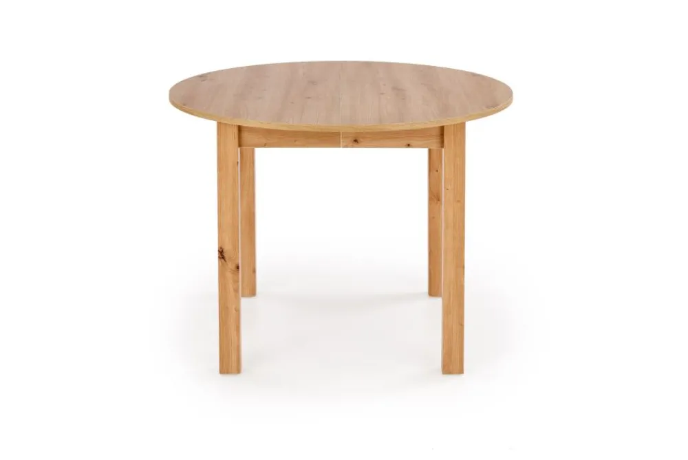Stół oparty jest na czterech stabilnych nogach wykonanych z trwałej płyty MDF. Ich prostokątny przekrój dodaje mu surowego charakteru i podkreśla geometryczną formę. Blat w dekorze artisan odwzorowuje naturalne usłojenie drewna i dodaje przytulności. Całość jest odporna na codzienne użytkowanie, łatwa w pielęgnacji i estetyczna. Dzięki nowoczesnej formie stół dobrze komponuje się z krzesłami tapicerowanymi, metalowymi i drewnianymi. To mebel, który łączy styl z funkcjonalnością.