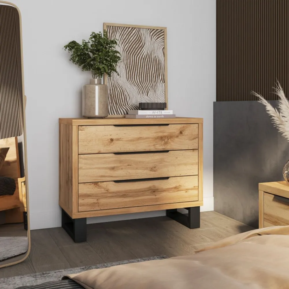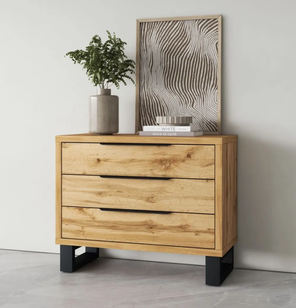 Szukasz wygodnego i stylowego rozwiązania do przechowywania swojej odzieży? Doskonałym wyborem będzie komoda Helvetia Halle S w odcieniu dąb wotan z trzema przestronnymi szufladami. Łącząc nowoczesny design, wysoką funkcjonalność i solidne wykonanie, ta komoda to nie tylko praktyczny mebel, ale również dekoracyjny element, który wzbogaci wnętrze Twojego domu.
