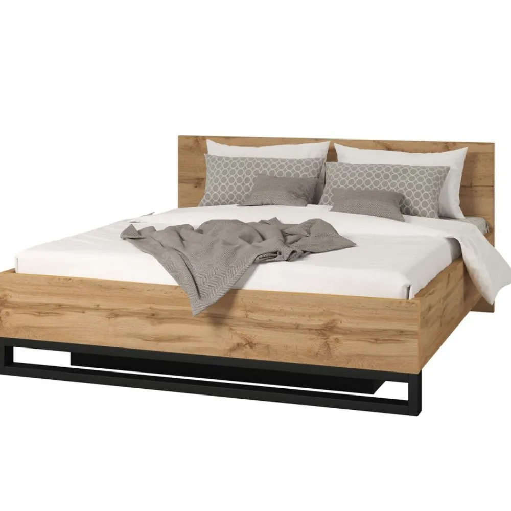 Łóżko zostało wykonane z najwyższej jakości materiałów, co gwarantuje jego trwałość i stabilność przez wiele lat użytkowania. Klasyczne linie i elegancki kolor Dąb Wotan sprawiają, że łóżko doskonale komponuje się z różnymi stylami wnętrz, dodając im nutę luksusu i wyrafinowania.