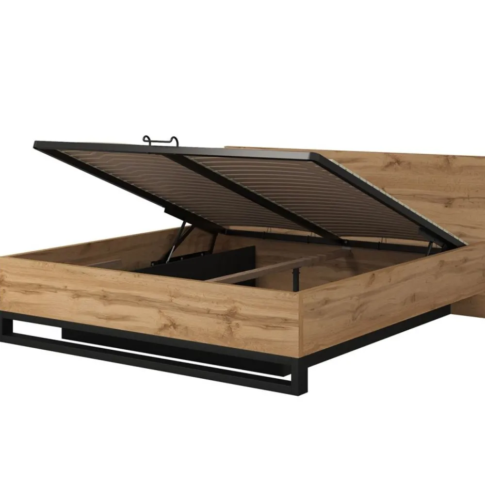 Łóżko do sypialni z pojemnikiem na pościel i metalowym stelażem