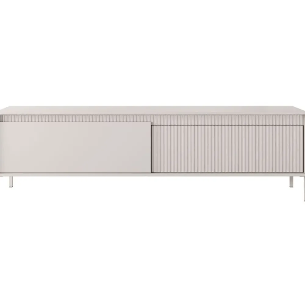 Nowoczesna beżowa szafka RTV z minimalistycznym designem i wysoką jakością wykonania
