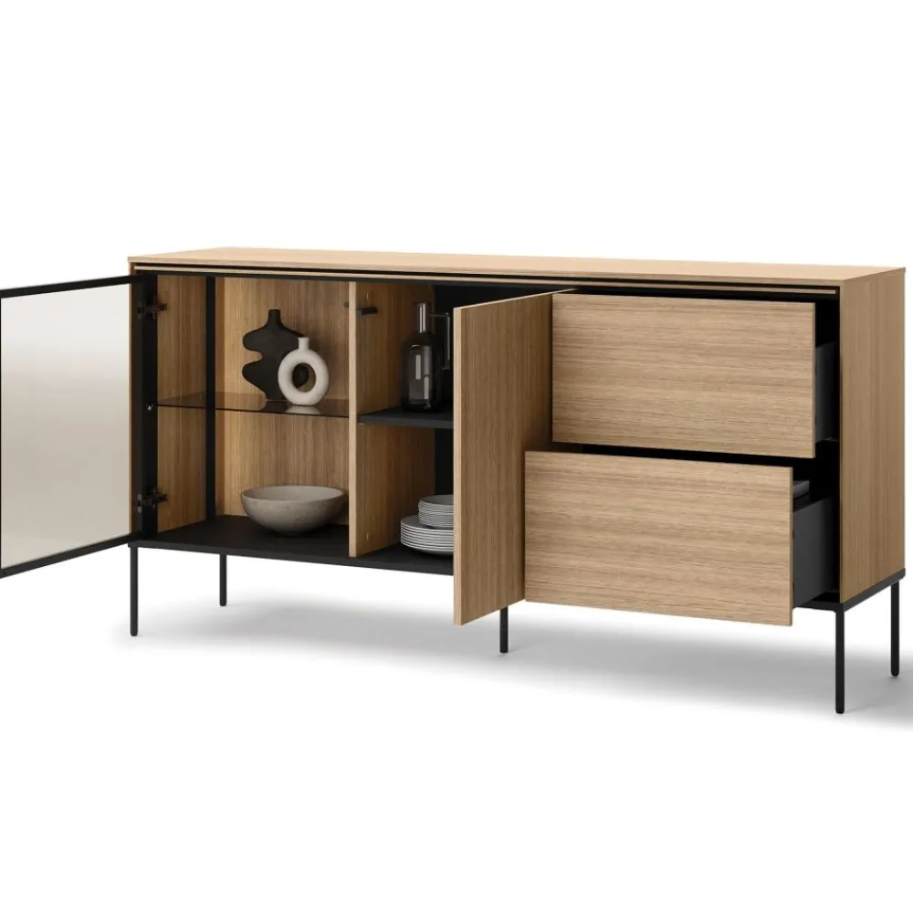 Komoda Lenart VISSO VI-05 oferuje również przestronne szafki, które umożliwiają wygodne przechowywanie różnych przedmiotów, takich jak zastawa stołowa, tekstylia czy dokumenty. Wysokie metalowe nogi dodają konstrukcji lekkości, zapewniając jednocześnie stabilność i trwałość. Dzięki uniwersalnemu designowi i kolorystyce, komoda wkomponuje się w każde wnętrze, dodając mu elegancji i funkcjonalności. To idealny wybór dla tych, którzy cenią sobie nie tylko praktyczność, ale również piękno i wysoką jakość wykonania. Ta komoda do jadalni, salonu lub sypialni będzie doskonałym dopełnieniem Twojego wnętrza, oferując stylowy i wygodny sposób na organizację przestrzeni.