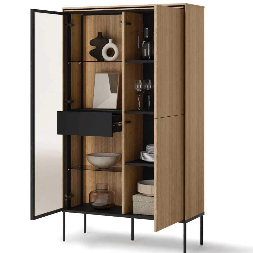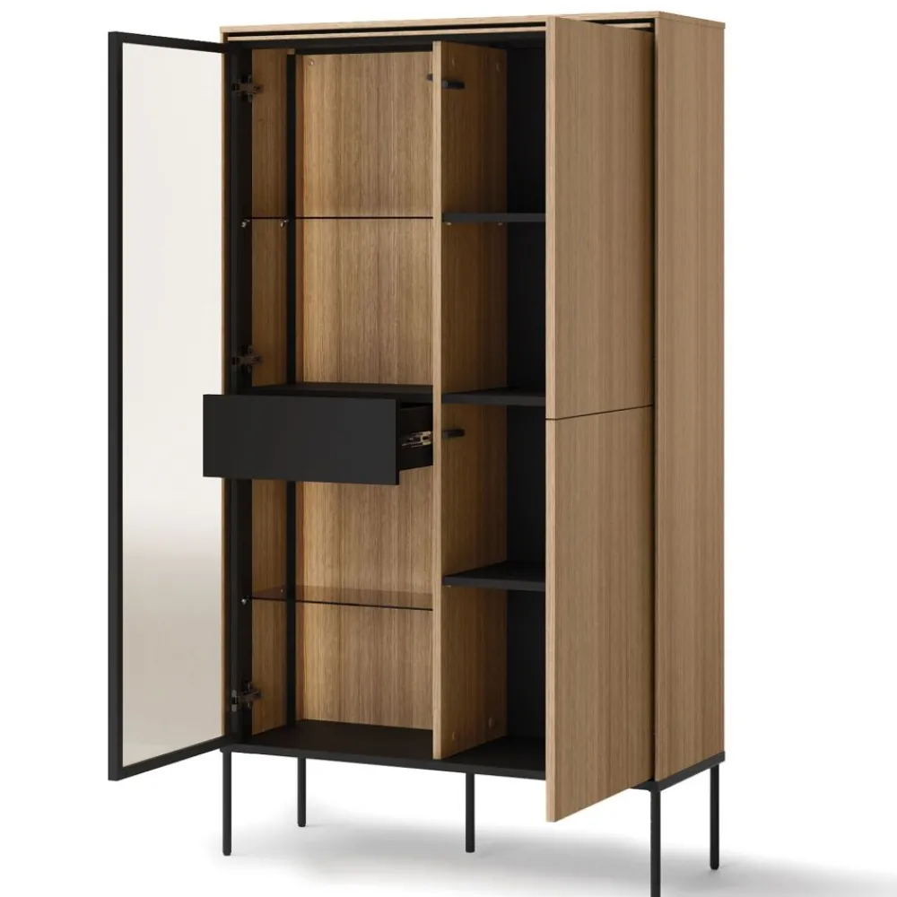 Komoda z witryną Lenart VISSO VI-01 oferuje dużo miejsca do przechowywania dzięki pojemnym szafkom. Rozkład półek pozwala na optymalne zagospodarowanie przestrzeni i uporządkowanie wszystkich potrzebnych przedmiotów. Dzięki przemyślanemu układowi, komoda zapewnia łatwy dostęp do rzeczy, które chcesz mieć pod ręką. Idealna do przechowywania naczyń, tekstyliów lub dokumentów, komoda z szafkami pomoże w utrzymaniu porządku w Twoim salonie lub jadalni. Funkcjonalność idzie tu w parze z eleganckim designem, co sprawia, że jest to mebel uniwersalny i ponadczasowy.