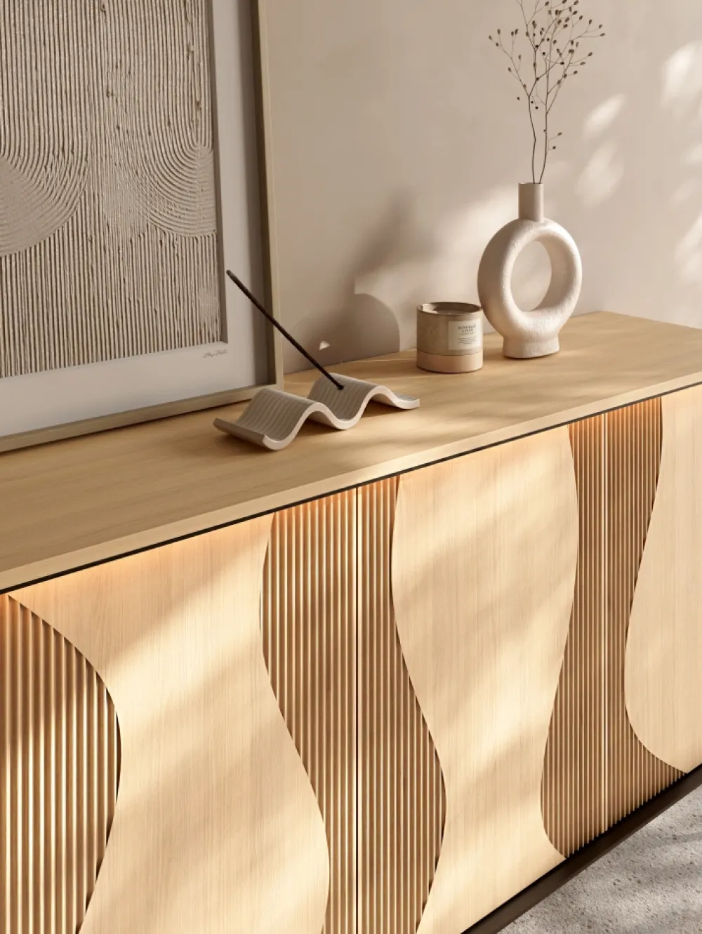 Komoda Flow FW-04 została zaprojektowana tak, aby maksymalnie ułatwić Ci przechowywanie. Cztery przestronne drzwi skrywają pojemne wnętrze, w którym bez trudu uporządkujesz domowe akcesoria. To idealne miejsce na dokumenty, tekstylia, zastawę stołową lub inne elementy wyposażenia salonu. Zamknięta forma mebla pomaga zachować porządek i estetyczny wygląd wnętrza. Każdy przedmiot ma swoje miejsce, a Ty zyskujesz większy komfort na co dzień. To rozwiązanie, które realnie wpływa na funkcjonalność pokoju dziennego.