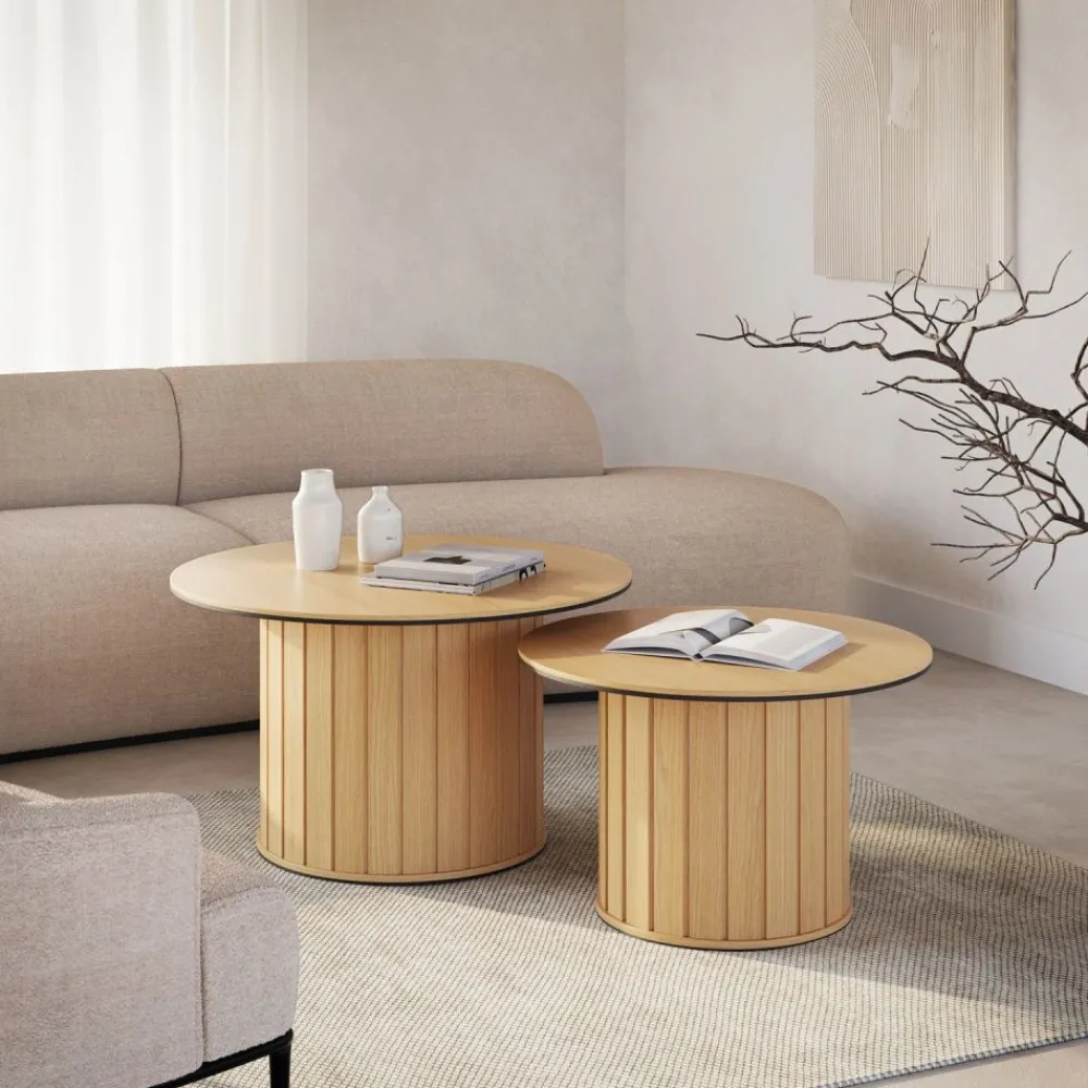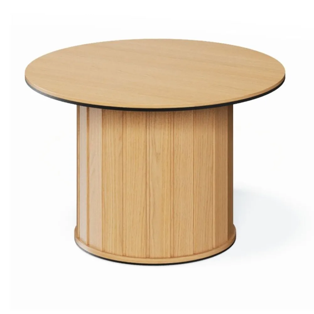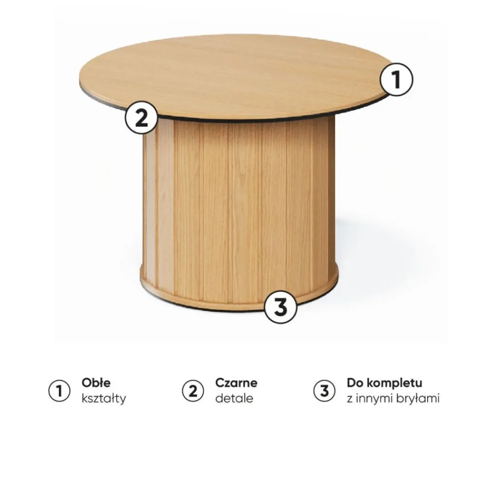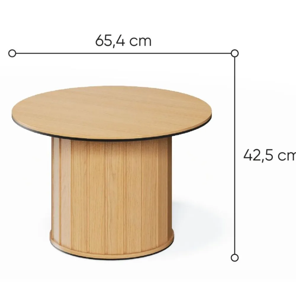 Stoliki kawowy Rotto wyróżnia się zaokrągloną podstawą z lamelowym wzorem, która dodaje mu niepowtarzalnego charakteru i nowoczesnego stylu. Naturalny, ciepły odcień drewna doda wnętrzu przytulności i elegancji. Stabilna i bezpieczna konstrukcja o delikatnych, miękkich liniach idealnie wpisuje się w najnowsze trendy aranżacyjne.