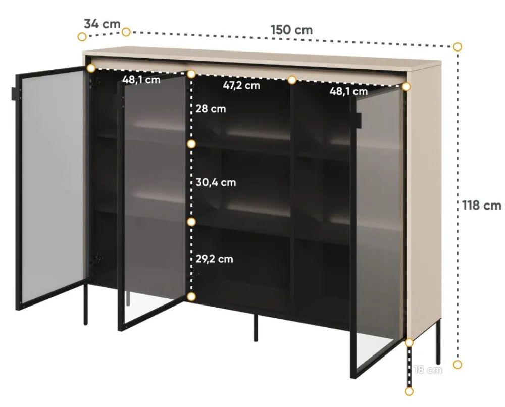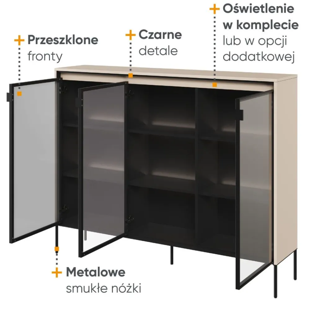 Jeśli szukasz przeszklonej komody do salonu, która połączy funkcjonalność z estetyką, to TR-08 jest idealnym wyborem dla Ciebie. Przekonaj się sam, dlaczego przeszklona komoda jest niezastąpiona w salonie, nadając mu stylu i elegancji. Pozwól jej stać się wyjątkowym elementem Twojego wnętrza i ciesz się zarówno praktycznością, jak i pięknem, które wniesie do Twojego domu.