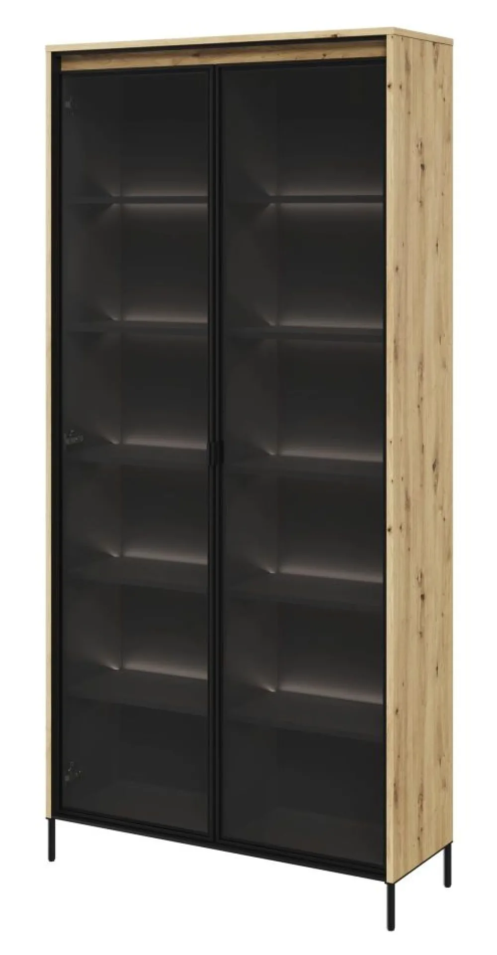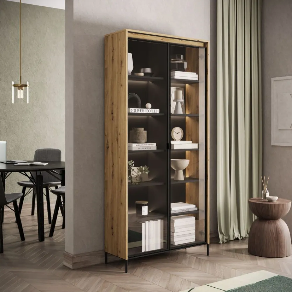 Ta stylowa witryna w stylu loft nie tylko sprosta Twoim oczekiwaniom funkcjonalności, ale także stanie się oryginalną dekoracją Twojego wnętrza. Jej nowoczesny design, wysoka jakość wykonania i możliwość podświetlenia sprawią, że Twój salon nabierze wyjątkowego charakteru. Wykorzystaj tę wysoką witrynę, aby wyeksponować swoje ulubione przedmioty i cieszyć się ich pięknem każdego dnia.