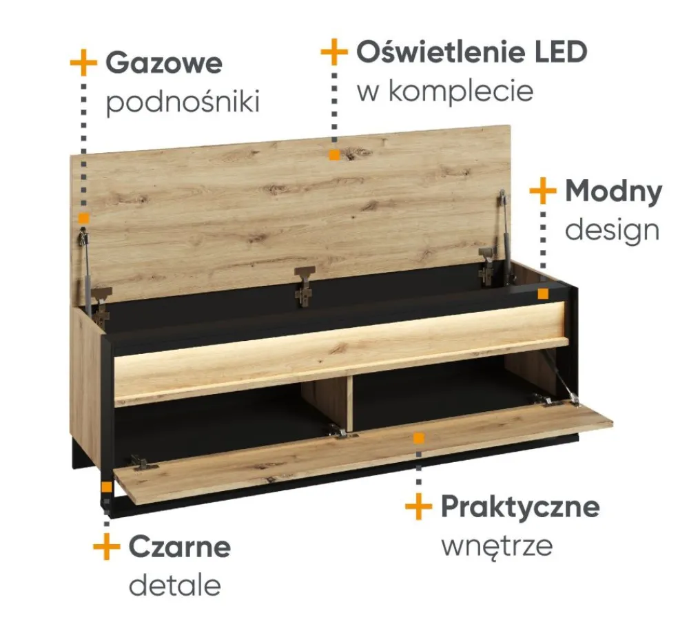 Solidne wykonanie z najwyższej jakości materiałów oraz inteligentne rozwiązania, takie jak podnośniki gazowe i oświetlenie LED, sprawiają, że jest to mebel idealny do każdego domu. Dzięki szerokiej kolekcji mebli QUANT, możesz stworzyć spójne i stylowe wnętrze, które będzie odzwierciedleniem Twojego gustu i potrzeb. Stwórz funkcjonalny i stylowy przedpokój czy sypialnię dzięki tej niezwykłej szafce na buty i ciesz się pięknem oraz wygodą, jaką oferują meble z kolekcji QUANT!