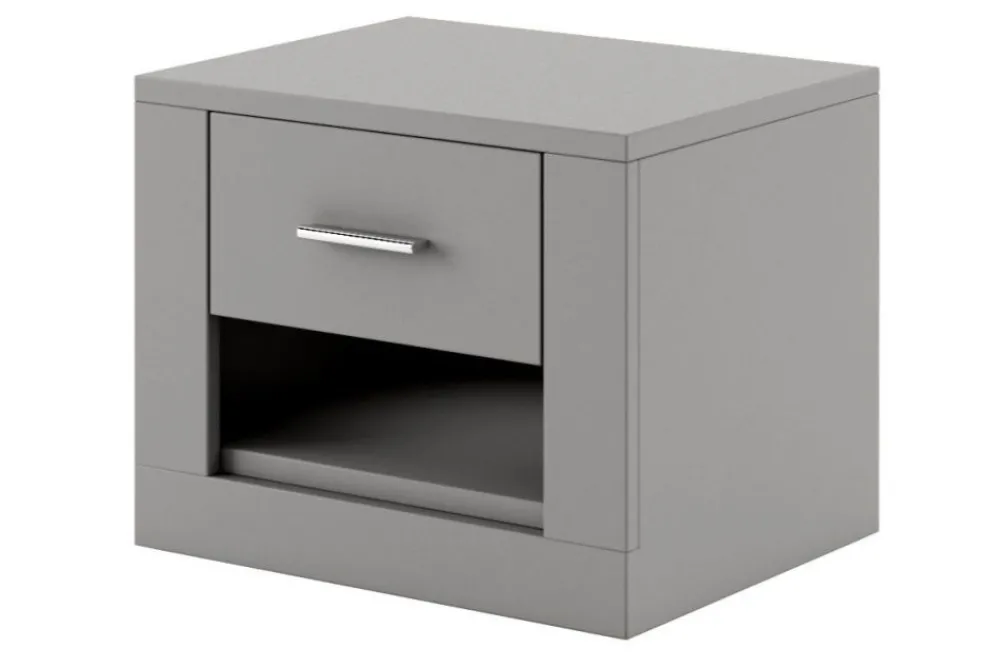 Szafka nocna to niezastąpiony element każdej sypialni. Prezentowana wersja to konfiguracja z szufladą i otwartą wnęką. Mebel idealny pod lampkę nocną, w szufladzie pomieszczą się wszystkie, drobne rzeczy osobiste, nie zabraknie również miejsca na ulubioną książkę.