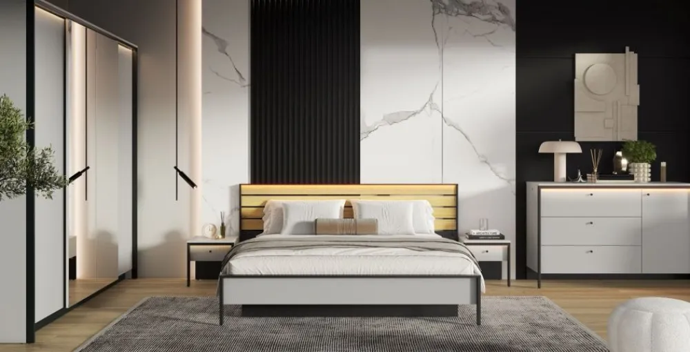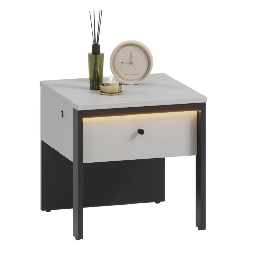 Przedstawiam Ci arcydzieło funkcjonalności i elegancji: szara szafka nocna z czarnymi wstawkami i oświetleniem. Ta niezwykła sztuka meblarska nie tylko spełnia praktyczne potrzeby każdej sypialni, ale także dodaje wyrafinowanego stylu.