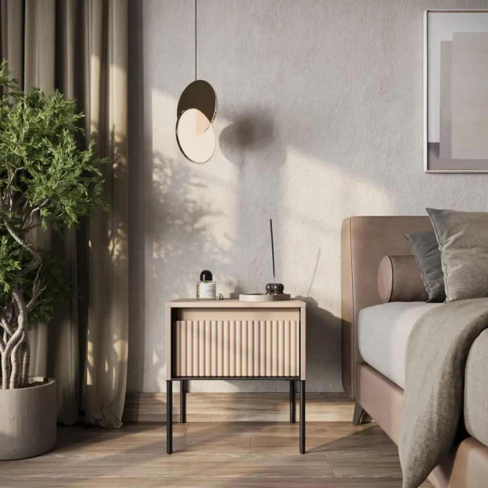 Szukasz idealnego stolika nocnego, który spełni praktyczne potrzeby, a jednocześnie wniesie do Twojej sypialni nutę nowoczesności? Mamy dla Ciebie rozwiązanie, które Cię oczaruje! Stolik nocny Trend TR-10 z wyjątkowym ryflowanym frontem to połączenie stylu, funkcjonalności i najwyższej jakości wykonania.