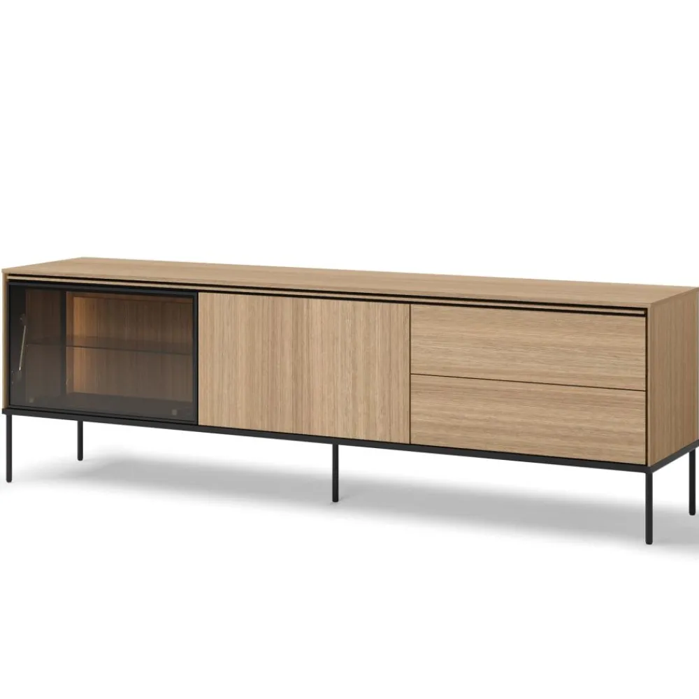 Szafka RTV VISSO VI-07 to mebel, który stanie się centralnym punktem Twojego salonu. Nowoczesny design z prostymi liniami i minimalistycznym wykończeniem doskonale wpasowuje się w różnorodne aranżacje, od skandynawskich po industrialne. Przestronne półki umożliwiają wygodne umieszczenie telewizora, odtwarzacza, konsoli i innych urządzeń, zapewniając wszystko w zasięgu ręki. Kolor dąb linearny dodaje wnętrzu ciepła i harmonii, czyniąc salon bardziej przytulnym. To idealny wybór dla osób, które szukają funkcjonalnego i eleganckiego rozwiązania do swojego salonu.