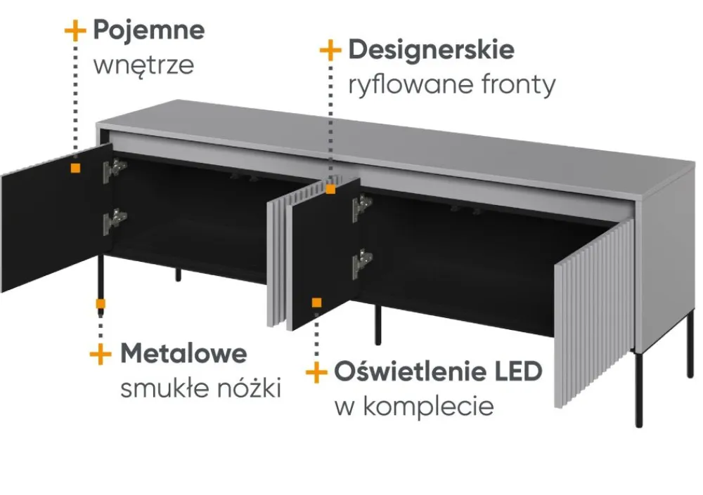 Poszukujesz idealnej szafki pod telewizor, która nie tylko będzie praktyczna, ale także stylowa? Oto doskonały wybór dla Ciebie – wyjątkowa szafka RTV z kolekcji TREND! Wykonana z wysokiej jakości materiałów, ta szafka gwarantuje solidność i niezawodność. Jej wyjątkowa kolorystyka w połączeniu z czarnymi detalami nadaje wnętrzu charakteru i tworzy przyjemną atmosferę.