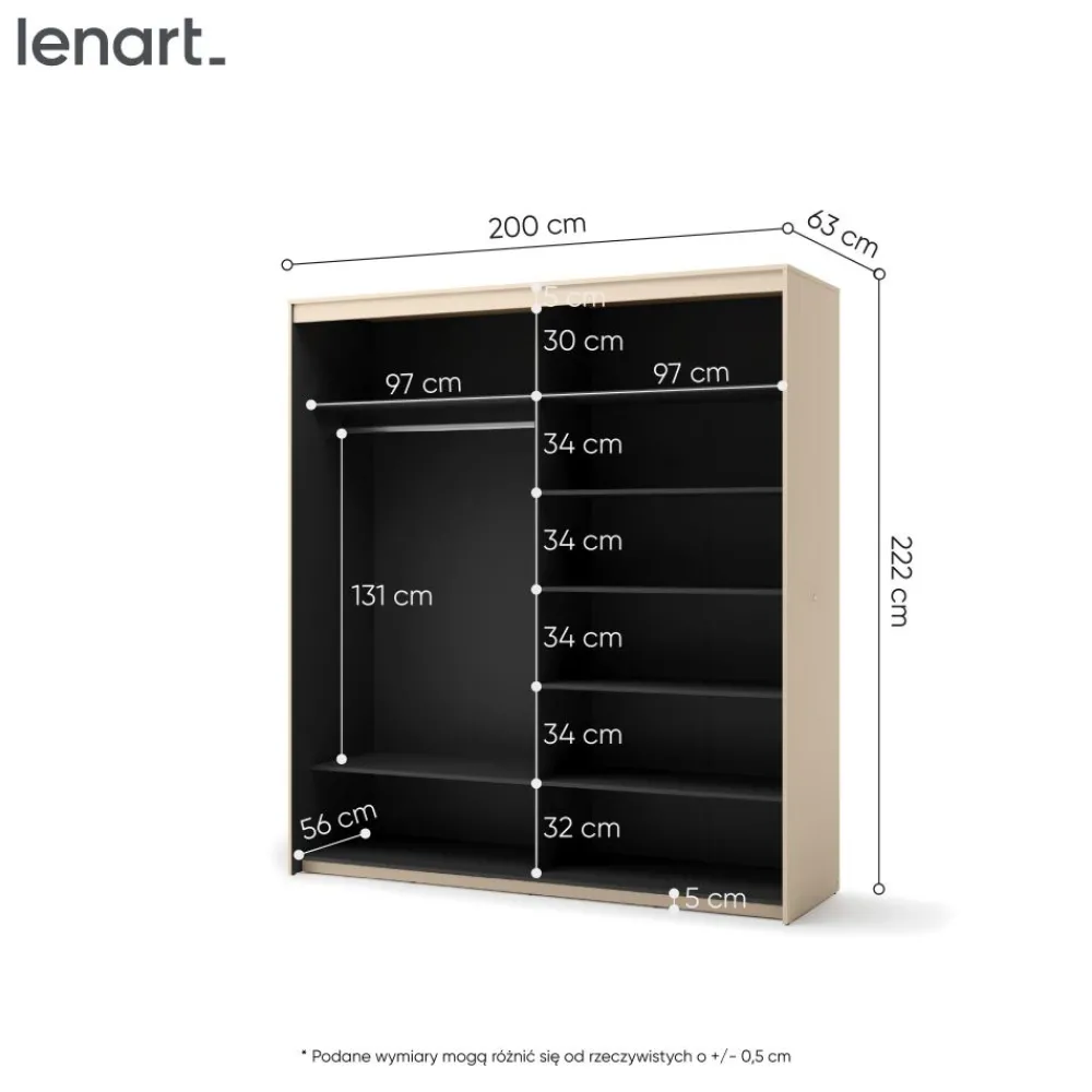 Szafa z lamelami to doskonałe połączenie nowoczesnego designu i funkcjonalności. Charakterystyczne ryflowane fronty nadają jej wyjątkowego wyglądu, który podkreśla elegancję wnętrza. Lamele nie tylko stanowią ozdobny element, ale również wprowadzają do pomieszczenia subtelną dynamikę i głębię. Doskonale komponuje się ze stylem skandynawskim, loftowym oraz klasycznym, dodając aranżacji oryginalnego charakteru. Przesuwane drzwi ułatwiają codzienne użytkowanie, nie zajmując dodatkowej przestrzeni w pomieszczeniu. To idealny wybór dla osób, które szukają praktycznego, a jednocześnie stylowego mebla.