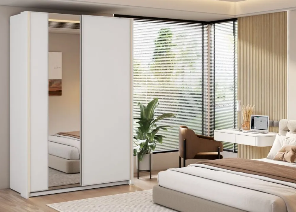 Odkryj nowy wymiar elegancji i funkcjonalności z naszą białą szafą dwudrzwiową z lustrem. Ta wyjątkowa szafa nie tylko doskonale komponuje się z różnorodnymi wnętrzami, ale także oferuje praktyczne rozwiązania, które uczynią codzienne organizowanie ubrań i akcesoriów łatwiejszym niż kiedykolwiek wcześniej.