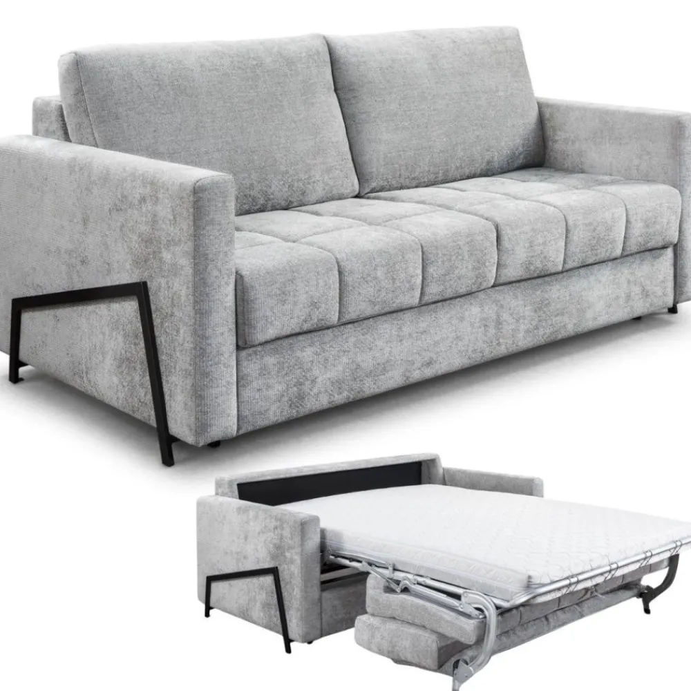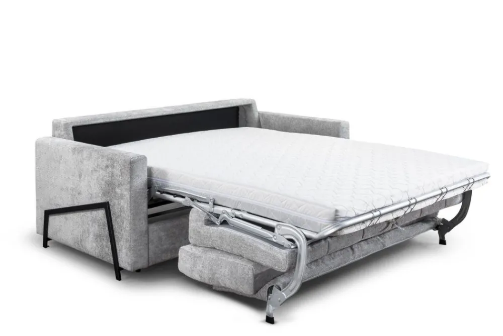 Włoski stelaż to synonim solidności i trwałości, zapewniający łatwe i szybkie rozłożenie sofy w wygodne łóżko. Zintegrowany materac to dodatkowy atut, który sprawia, że noclegi na sofie Angel są równie komfortowe, jak na tradycyjnym łóżku. Wypełnienie siedziska z wysokoelastycznej pianki gwarantuje komfortowy wypoczynek każdego dnia. Od Ciebie zależy jaki materac wybierzesz – pianka konwencjonalna 12 cm lub pianka HR o wysokości 14 cm.