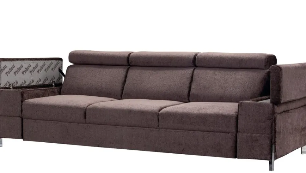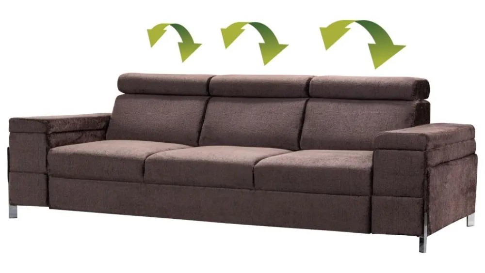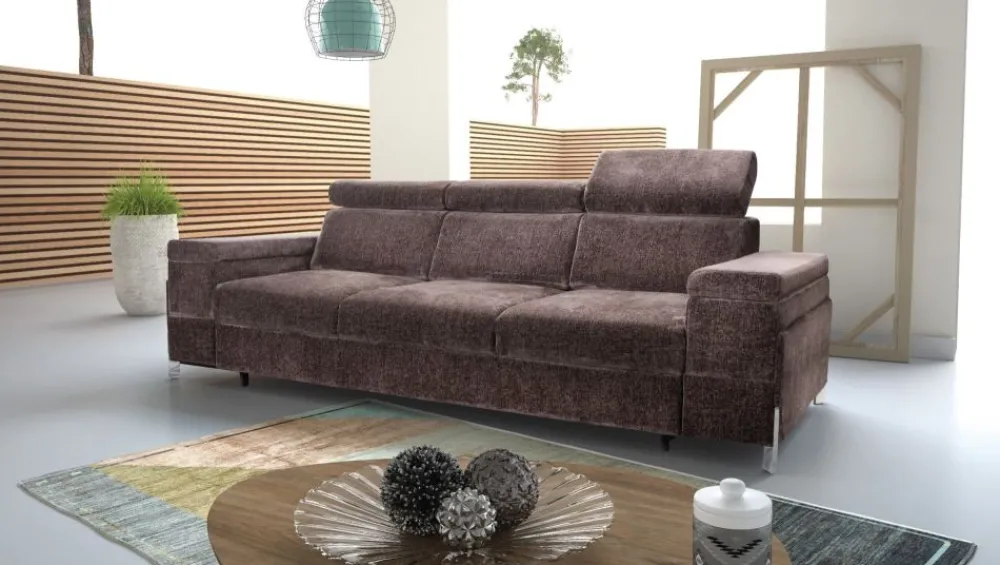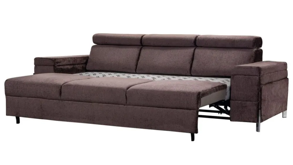 Model Ulises to zdecydowanie propozycja do współczesnych wnętrz. Szerokie boczki, niższa konstrukcja oraz wysokie nóżki to elementy wskazujące na wysoki poziom nowoczesności. Charakterystyczne nóżki metalowe powodują, że cała bryła wygląda lekko mimo stosunkowo większym gabarytom. Siedzisko, podobnie jak oparcie jest podzielone na trzy strefy, co zdecydowanie wpływa na komfort użytkowania – tworzą się niezależne od siebie strefy. Wygodna w rozkładaniu i składaniu funkcja spania typu leopard gwarantuje spokojny sen. Całości dopełniają regulowane zagłówki, dzięki którym możemy dopasować idealnie wysokość i kąt nachylenia. Wysokość narożnika w zależności od poziomu zagłówków: 85-105cm. Bardzo ciekawym rozwiązaniem jest zastosowanie pojemników na pościel w szerokich boczkach kanapy.