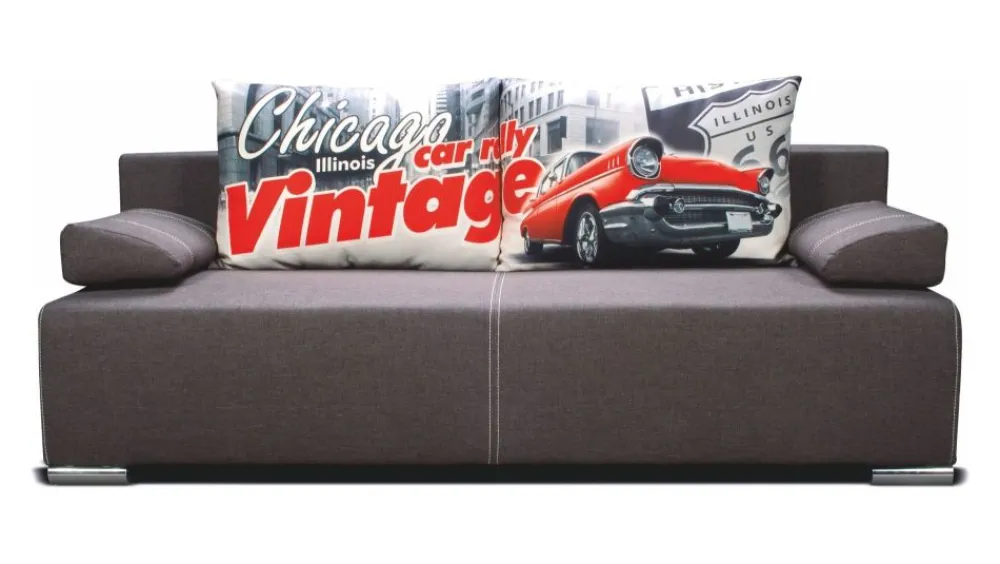 Meble z kolekcji Play to perfekcyjne połączenie stylu, jakości wykonania i funkcjonalności. Za komfort odpowiadają sprężyny bonellowe, które są rozmieszone na całej powierzchni – również na części rozkładanej. Kanapa wyposażona w praktyczną funkcję spania – prosta powierzchnia i stosunkowo duża powierzchnia spania zapewni spokojny sen. Funkcja rozkładania wzbogacona również o automat wspomagający otwieranie oraz o przydatny pojemnik na pościel. Kanapa opiera się na solidnych nóżkach metalowych – chromowanych. Przy sofie PLAY występuje możliwość połączenia wybranego nadruku z dowolnym kolorem tkaniny sawana / neo.