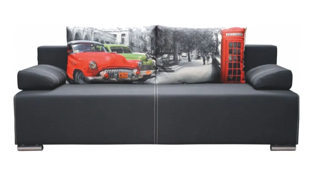 Meble z kolekcji Play to perfekcyjne połączenie stylu, jakości wykonania i funkcjonalności. Za komfort odpowiadają sprężyny bonellowe, które są rozmieszone na całej powierzchni – również na części rozkładanej. Kanapa wyposażona w praktyczną funkcję spania – prosta powierzchnia i stosunkowo duża powierzchnia spania zapewni spokojny sen. Funkcja rozkładania wzbogacona również o automat wspomagający otwieranie oraz o przydatny pojemnik na pościel. Kanapa opiera się na solidnych nóżkach metalowych – chromowanych. Przy sofie PLAY występuje możliwość połączenia wybranego nadruku z dowolnym kolorem tkaniny sawana / neo.
