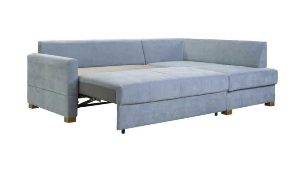 Postaw na styl i wyjątkowy sposób wykonania. Firma Libro należy do lidera w produkcji mebli tapicerowanych, wypracowane doświadczenie przekłada się na jakość produktu końcowego. Dokładne i solidne wykonanie daje gwarancję długiego okresu użytkowania. Narożnik wyposażony w duży pojemnik na pościel mieszczący się w podnoszonej otomanie. Funkcja spania typu leopard zapewni spokojny sen, przy bardzo prostym procesie rozkładania i składania. Funkcja spania typu leopard ze wspomaganiem otwierania przeznaczona jest również do codziennego spania. Wypełnienie elementów siedziskowych to sprężyna falista i bonell, dzięki temu mebel jest bardzo komfortowy. Luźne poduchy oparciowe wykonane z piankowej formatki. Mebel posiada bardzo duży pojemnik na pościel wykonany z białej laminowanej płyty. Kolorystyka nóżek drewnianych do wyboru, dzięki temu dobierzemy odcień odpowiedni do koloru mebli, co wpłynie na spójność aranżacji.
