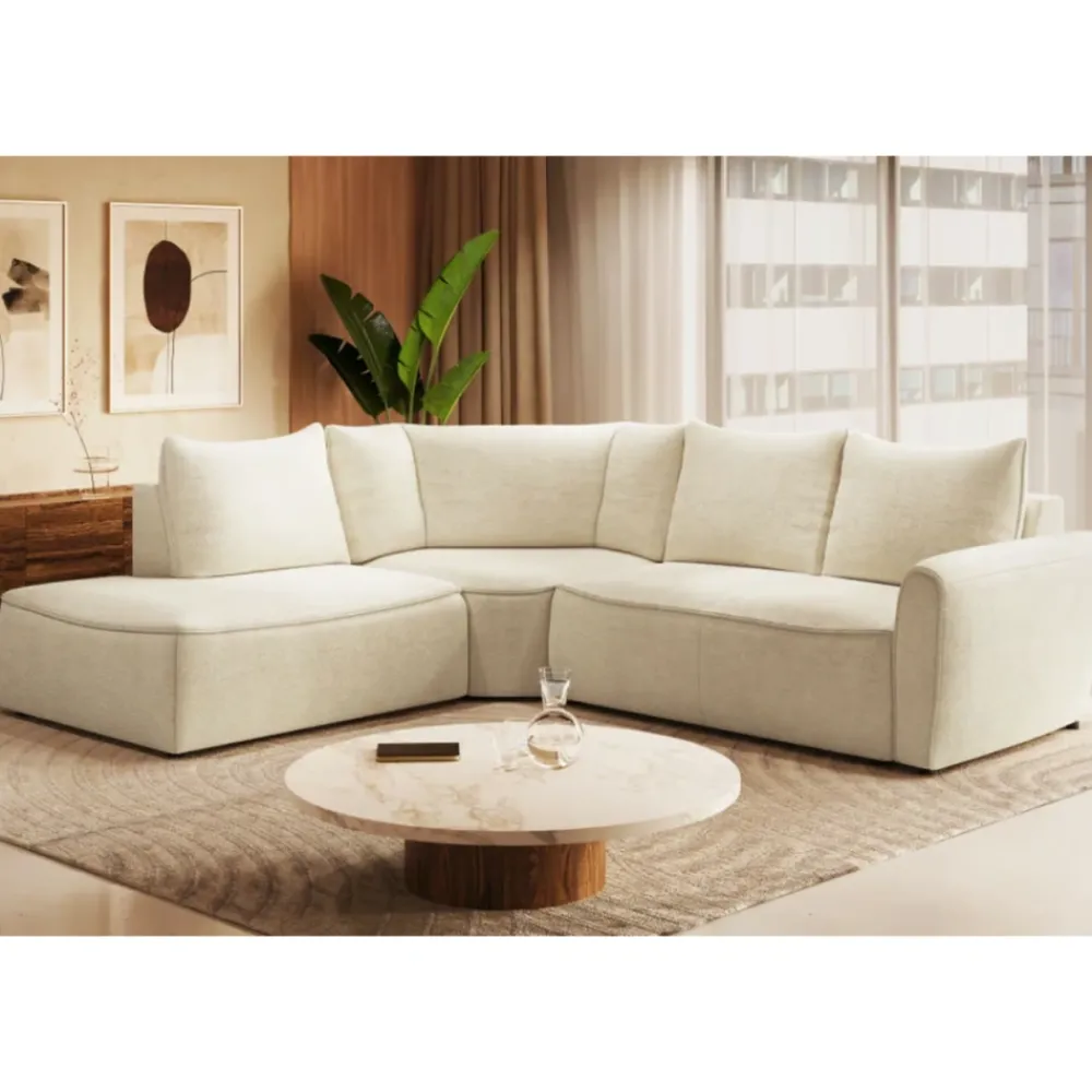 Narożnik modułowy Eclipse to mebel, który stworzono z myślą o kobietach lubiących komfort, elastyczność i piękno w każdym detalu. Dzięki modułowej budowie możesz skomponować układ dokładnie taki, jaki pasuje do Twojego salonu, stylu życia i codziennych potrzeb. To Ty decydujesz, jak chcesz odpoczywać – czy wolisz większą otomanę, rozbudowany narożnik czy bardziej klasyczny układ. Proste linie przełamane delikatnymi łukami i dekoracyjną kedrą nadają mu niepowtarzalny charakter, który sprawia, że prezentuje się wyjątkowo kobieco i nowocześnie. Czytając książkę, oglądając ulubiony serial lub pijąc kawę o poranku, poczujesz, jak idealnie dopasowuje się do Twojego ciała i nastroju. Eclipse daje Ci poczucie harmonii w przestrzeni i komfortu, na który naprawdę zasługujesz. Gdy raz go ustawisz pod swoje potrzeby, nie będziesz chciała niczego zmieniać.