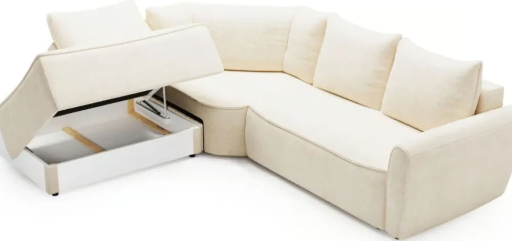 Są dni, kiedy po prostu chcesz rozłożyć narożnik i zmienić salon w idealne miejsce do drzemki lub wieczornego relaksu. Eclipse oferuje funkcję spania typu puma – lekką, samoskładającą się i wyjątkowo wygodną. Rozłożenie zajmuje kilka sekund, a powierzchnia 140 × 220 cm pozwala poczuć się swobodnie, jak na pełnowymiarowym łóżku. Do wyboru masz dwie wersje modułu z funkcją spania: 2kF i 2F, różniące się szerokością powierzchni snu, dzięki czemu dopasujesz narożnik do swoich potrzeb i przestrzeni. Wbudowany pojemnik na pościel to idealne miejsce na koce, poduszki i dodatkową pościel – wszystko schowane, ale zawsze pod ręką. Jeśli cenisz sobie wygodę i sprytne rozwiązania w jednym meblu, Eclipse będzie Twoim codziennym sprzymierzeńcem. To narożnik, który dopasowuje się do Twojego życia, a nie odwrotnie.