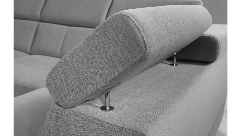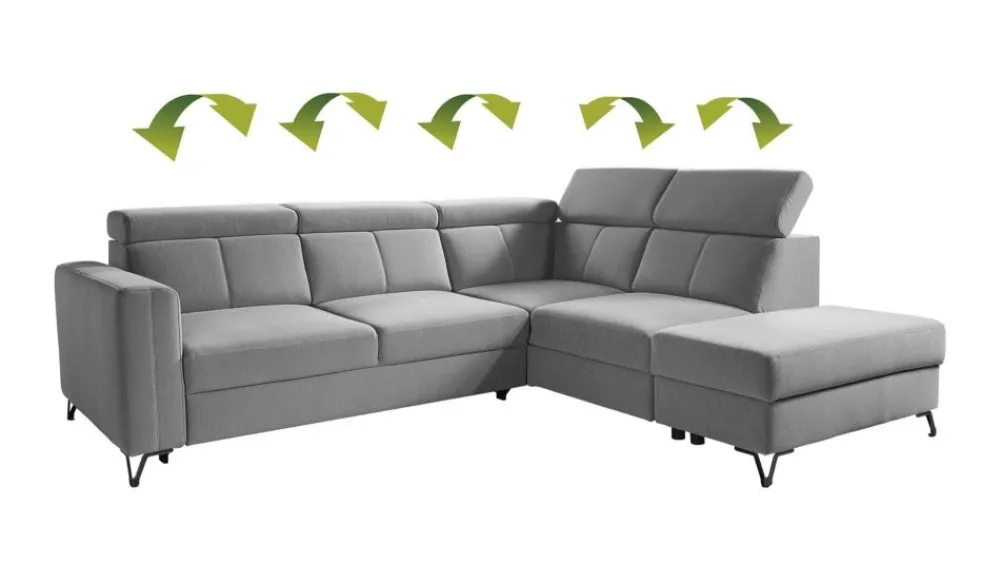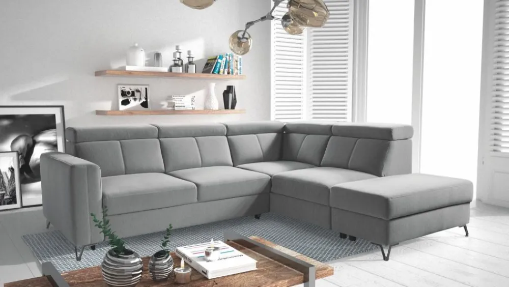 Narożnik Elbrus to komfortowy i nowoczesny narożnik dla wymagających osób. Charakterystyczne przeszycia krzyżakowe dodają wyjątkowego stylu. Możliwość wyboru koloru ze wzornika. Model o podwyższonym standardzie użytkowania również za sprawą podwójnego systemu sprężynowania w siedzisku tzn. bonell kieszeniowy i sprężyny faliste. Oparcie wypełnione pianką HR na konstrukcji z pasów tapicerskich lekko poddaje się podczas użytkowania i dopasowuje do kształtu pleców. Ruchome zagłówki pozwalają na zwiększenie wysokości oparcia i dostosowanie jego profilu do potrzeb użytkownika. Zakres całkowitej wysokości: 85-104 cm. Dzięki podziałowi siedzisk i oparć wyodrębnione są komfortowe strefy dla każdego siedziska osobno. Wysokie metalowe nóżki w kolorze antracytowym wyglądają niezwykle elegancko, a przy tym dzięki podwyższeniu, ułatwiają utrzymanie czystości pod meblem.