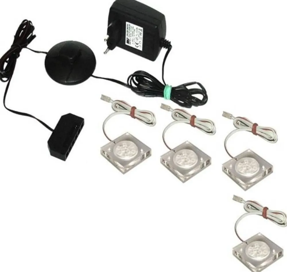 W skład zestawu wchodzi oprawa LED STIK 50F/T z akrylu, moc: 1,5W 12V DC – 9 LED – 3 szt, kolor światła: biały ciepły,
