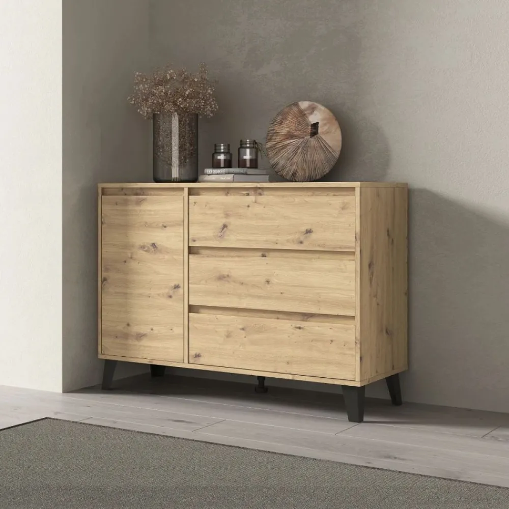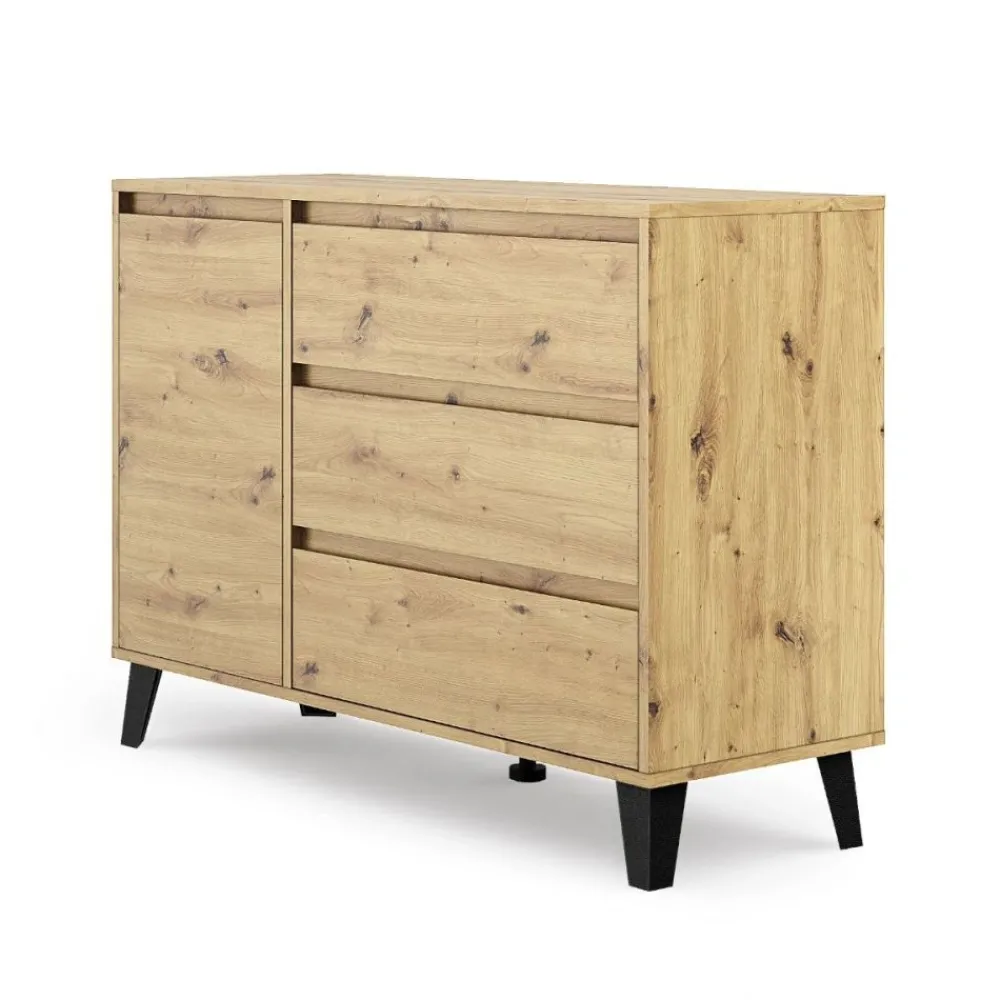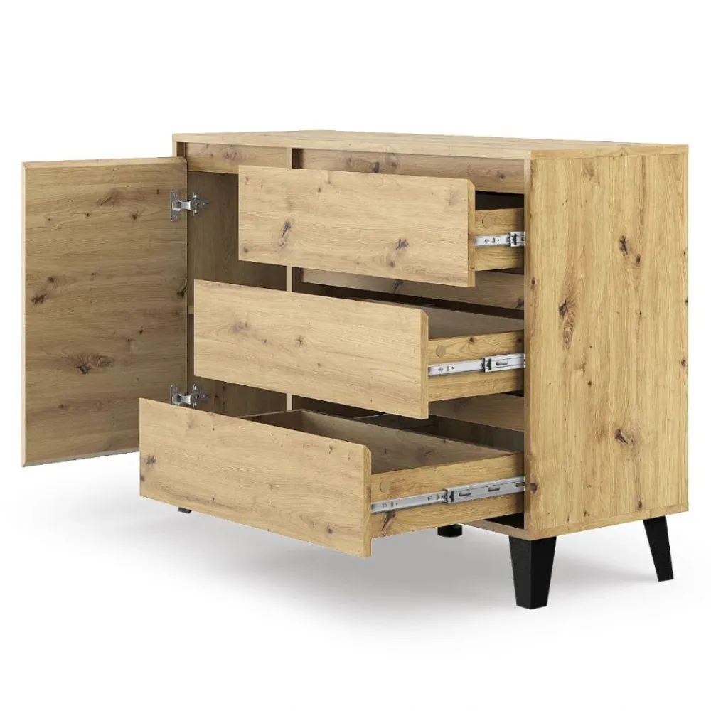 Komody z kolekcji BORG wyróżniają się nowoczesnymi liniami i minimalistycznym designem. Wersja w bieli dodaje wnętrzu świeżości i nowoczesności, podczas gdy wersja w dębie artisan wnosi ciepło i naturalny akcent. Te meble doskonale komponują się zarówno z nowoczesnym, jak i klasycznym wystrojem wnętrz.