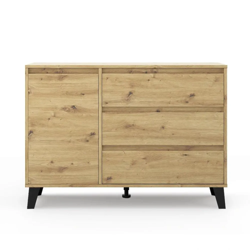 Komoda może być zmontowana z szufladami po prawej lub lewej stronie, co pozwala na lepsze dopasowanie do układu Twojego wnętrza.