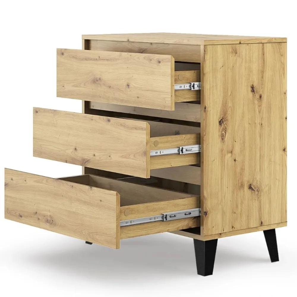 Kompaktowe wymiary komody BORG z trzema szufladami czynią ją idealnym rozwiązaniem do każdego pomieszczenia. Zapewnia nie tylko praktyczność, ale także estetyczny wygląd. Przestronne szuflady umożliwiają zorganizowane przechowywanie różnych przedmiotów, które są łatwo dostępne.