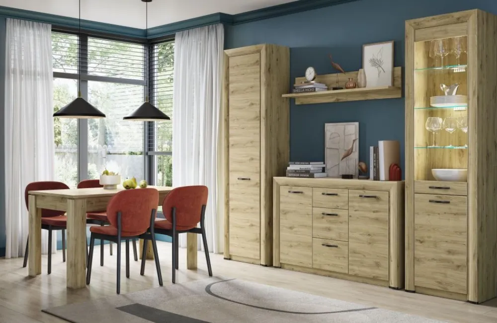 Kolekcja oczaruje Cię opływowymi, prostymi kształtami oraz niesamowitym, ciepłym wybarwieniem, które z pewnością będzie pasowało do większości stylów aranżacji. Duża ilość mebli do wyboru sprawi, że umeblujesz zarówno salon, jadalnię, przedpokój jak i sypialnię oraz pokój młodzieżowy.