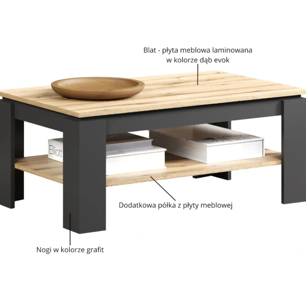 Nowoczesny stolik kawowy w kolorze grafit/dąb evok Esteban