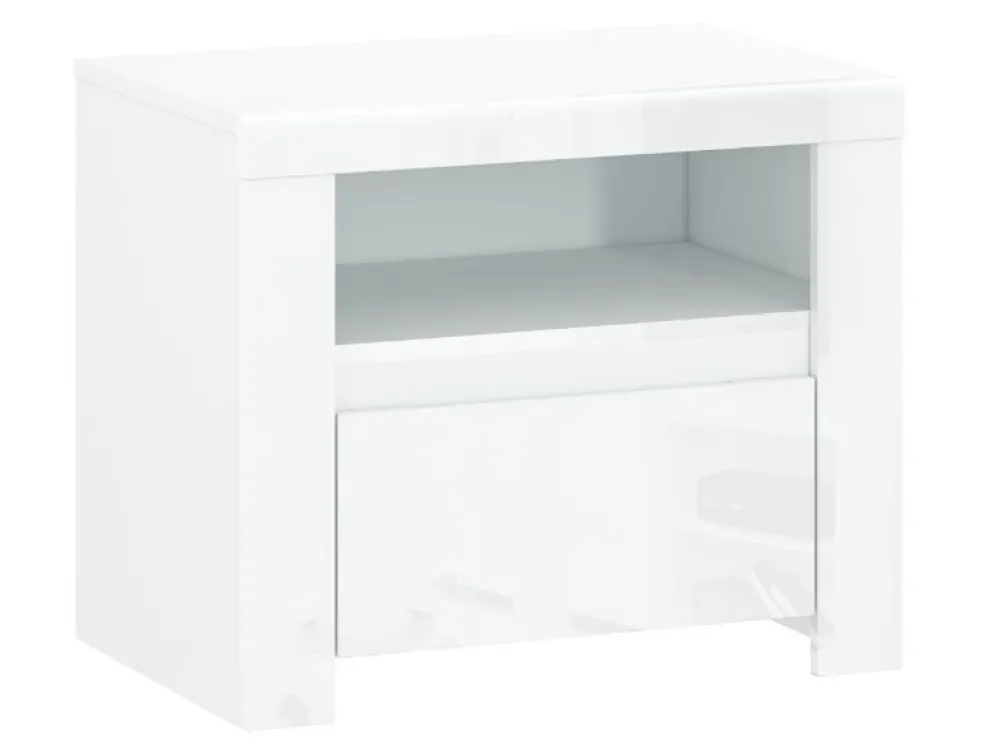 Mebel, który jest niezbędny w sypialni zaraz po łóżku? Oczywiście, jest to szafka nocna, która zajmuje zaszczytne miejsce zaraz przy łożu. Szafka musi być funkcjonalna, mieć szafkę oraz szufladę do której odłożymy np. okulary, telefon, zegarek oraz powierzchnie blat szafki, na którym postawimy lampkę nocną, budzik czy tez książkę, którą czytaliśmy przed snem. Wybierając kolekcje mebli Lingo na pewno uda się usatysfakcjonować wielbicieli nienagannej prostoty, ale w nowoczesnej odsłonie. Kolekcja Lingo, to klasyczna forma w białym kolorze, który daje szereg możliwości do aranżowania niemalże każdego wnętrze w Twoim domu czy mieszkaniu.