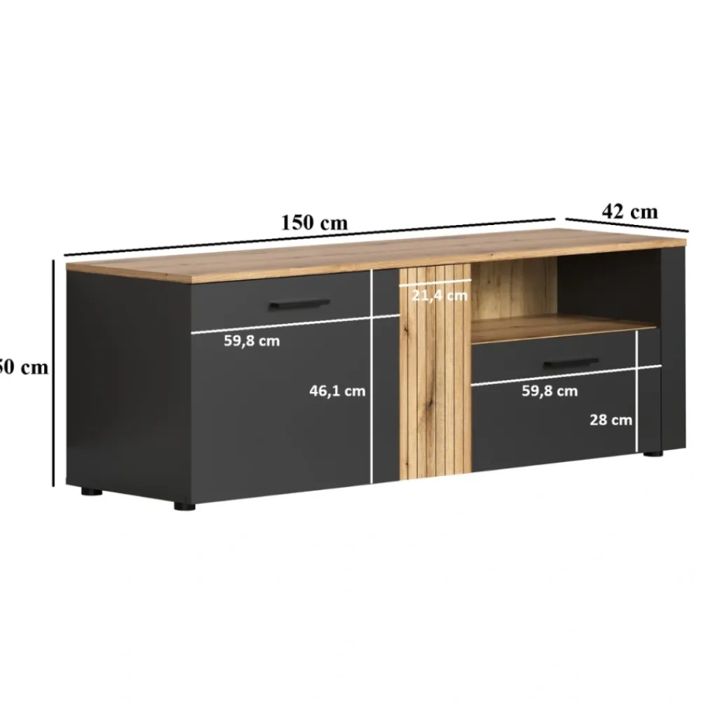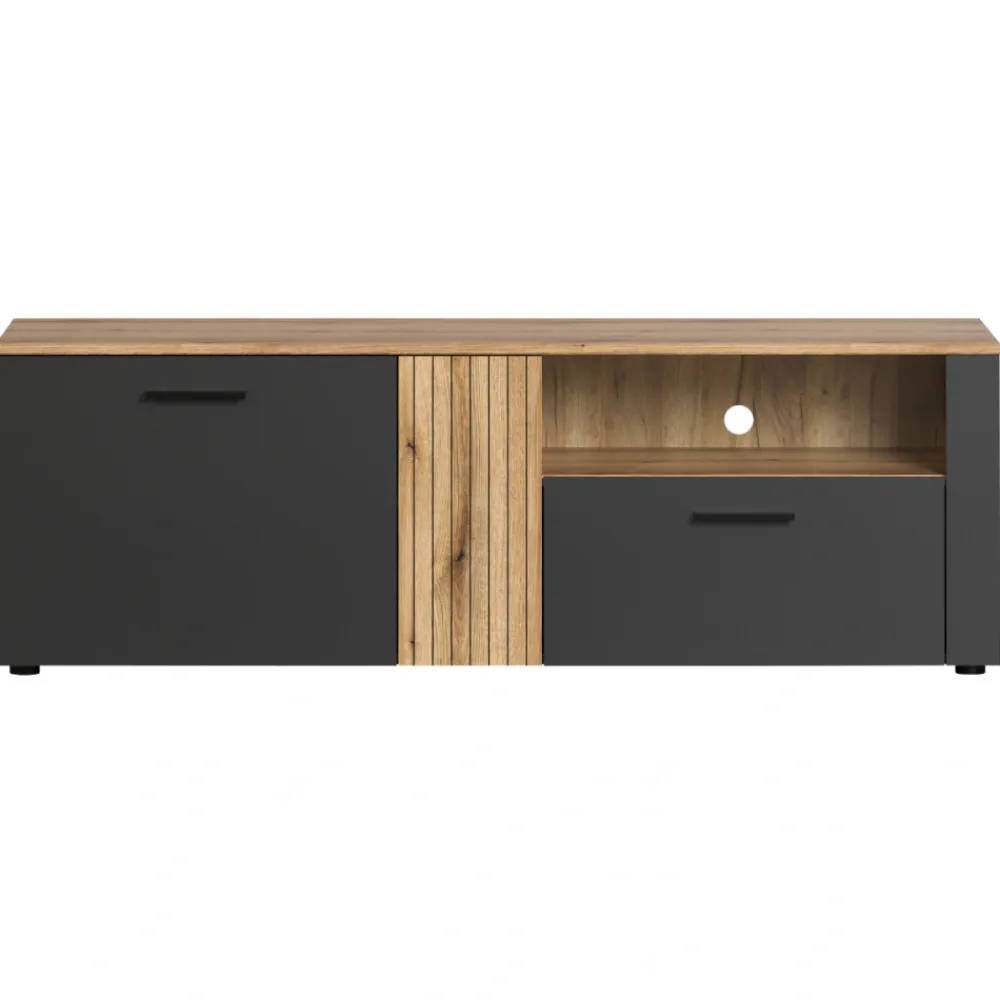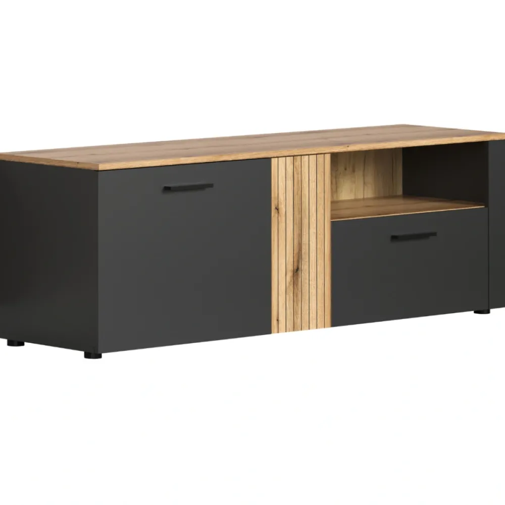 Szafka RTV Esteban 150 cm grafit/dąb evok – nowoczesny mebel, który powinnaś mieć w swoim salonie