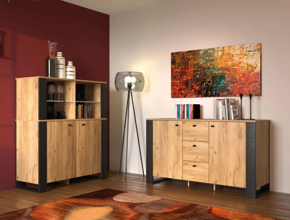 Industrialny design jest idealnym połączeniem surowości i elegancji, które dodają charakteru i nowoczesności każdemu wnętrzu. Kolekcja w kolorze dąb złoty craft z elementami w odcieniu czerni doskonale komponuje się z różnymi stylami aranżacji mieszkania, tworząc unikalne połączenie kontrastów.