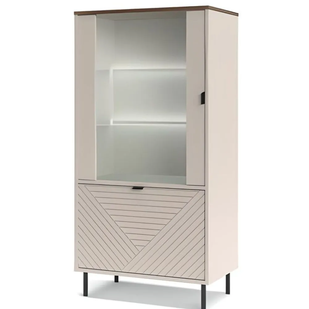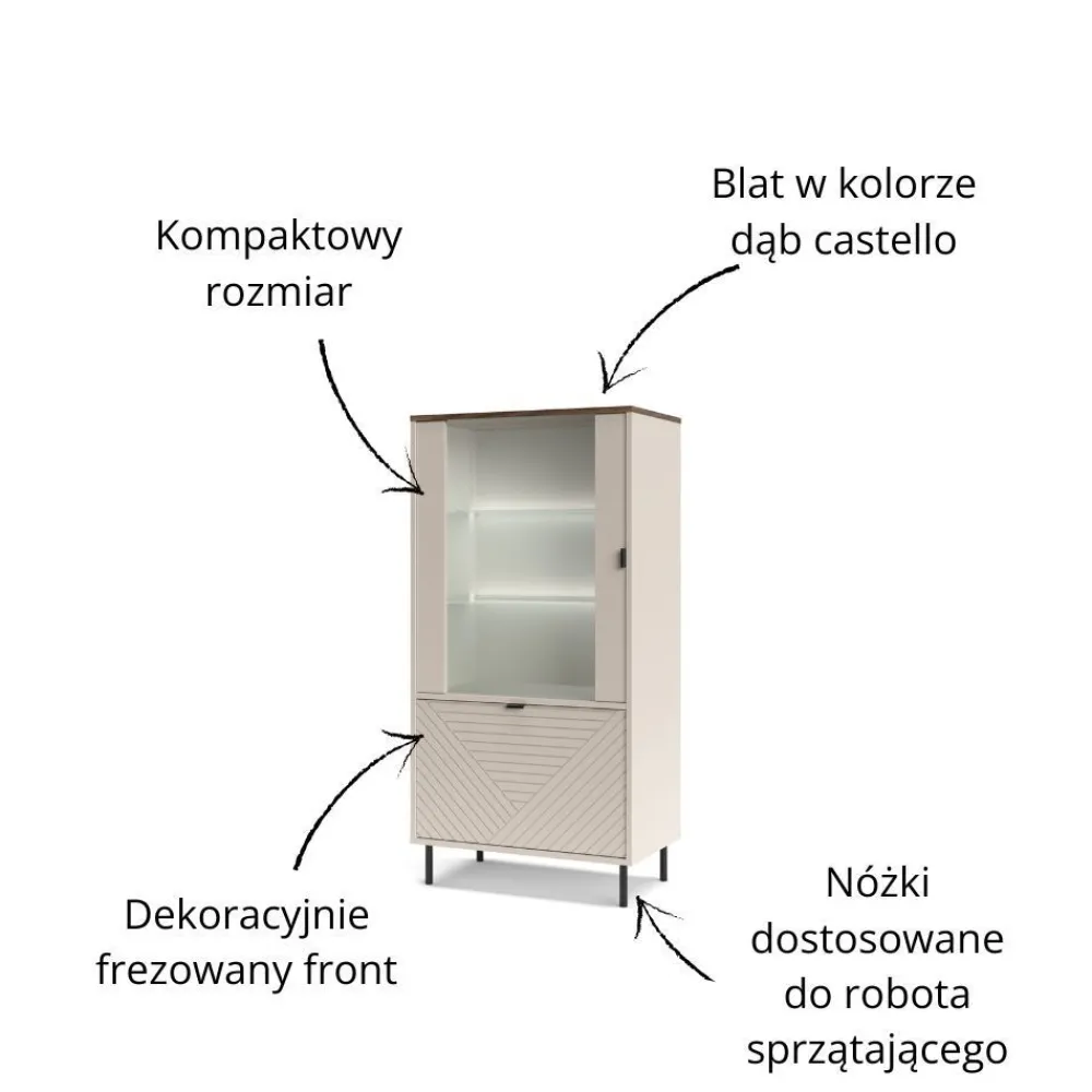 Szeroka witryna loftowa EVO 1D1W EO-10 to doskonały wybór dla osób, które cenią nowoczesny, industrialny styl w swoim salonie. Witryna łączy surowy charakter loftowego designu z elegancją, co tworzy unikalną estetykę idealnie wpisującą się w trendy aranżacyjne. Korpus w kolorze kaszmiru oraz szklane fronty i półki nadają meblowi lekkości i wprowadzają do wnętrza przestronność. Ryflowany front szafki, wykonany z płyty MDF, dodaje całości wyjątkowego charakteru i podkreśla industrialny styl. Taka witryna doskonale sprawdzi się jako centralny element salonu, przyciągając wzrok i nadając wnętrzu nowoczesnego charakteru. To mebel, który nie tylko wypełnia przestrzeń, ale również nadaje jej unikalnego stylu, podkreślając wyjątkowość Twojego wnętrza.