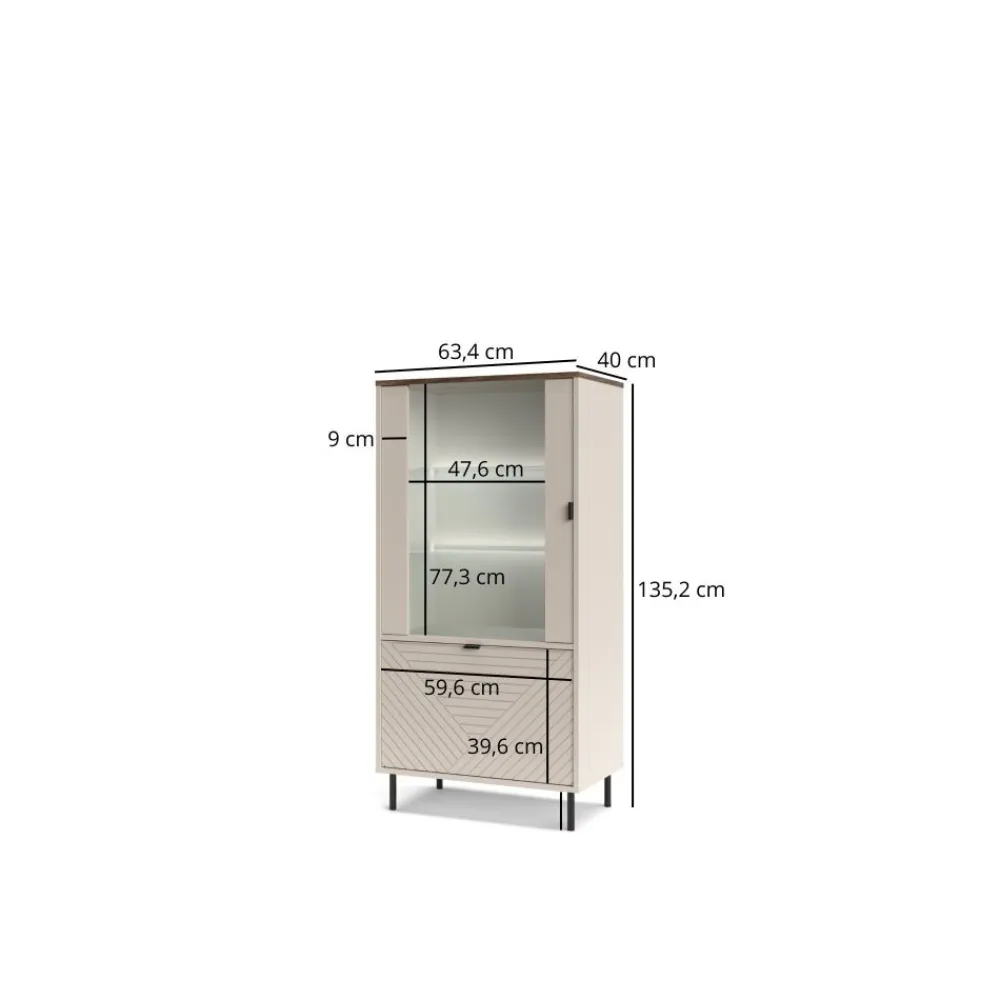 Szeroka witryna loftowa EVO 1D1W EO-10 to mebel, który został wykonany z najwyższej jakości materiałów, gwarantujących długowieczność i wytrzymałość. Solidna konstrukcja z płyty MDF oraz szkło na półkach zapewniają trwałość i odporność na codzienne użytkowanie. Korpus w kolorze kaszmiru jest nie tylko estetyczny, ale także odporny na zarysowania, co sprawia, że witryna przez lata zachowa swój nienaganny wygląd. Ryflowany front szafki dodaje jej elegancji i wyrafinowania, jednocześnie ukrywając zawartość przed wzrokiem. Montaż witryny jest prosty, a jej pielęgnacja nie sprawia trudności, co pozwala cieszyć się jej funkcjonalnością i pięknem bez zbędnego wysiłku. Wybierając witrynę EVO 1D1W EO-10, zyskujesz pewność, że inwestujesz w mebel, który będzie służył przez lata, zachowując swoją estetykę i funkcjonalność na najwyższym poziomieprawiając, że Twoje wnętrze nabiera nowego, efektownego wymiaru.