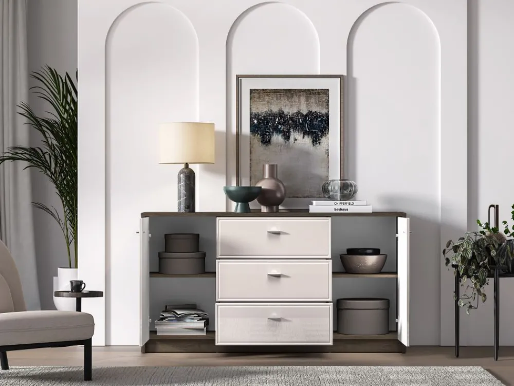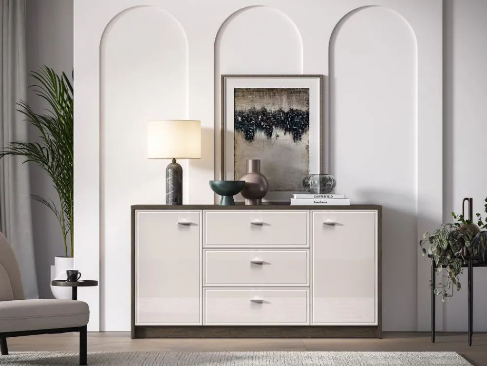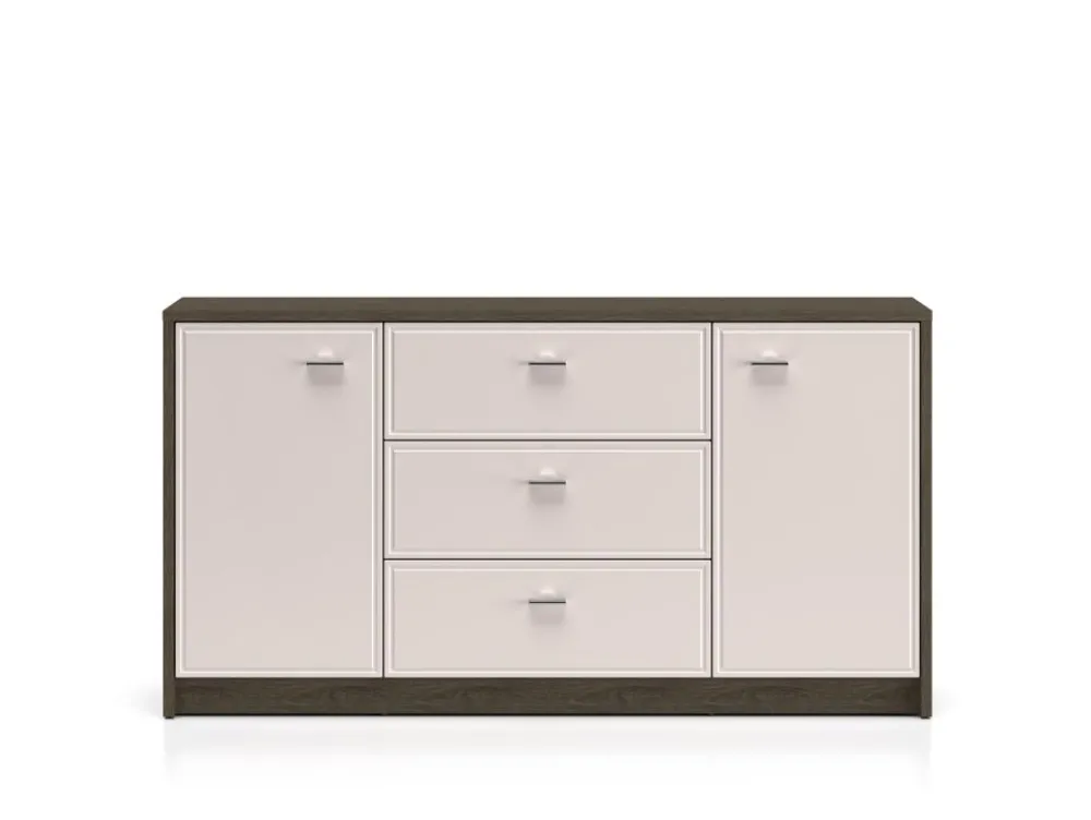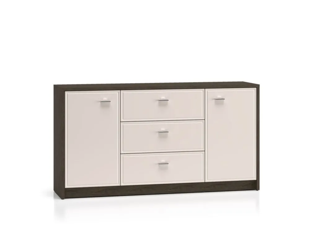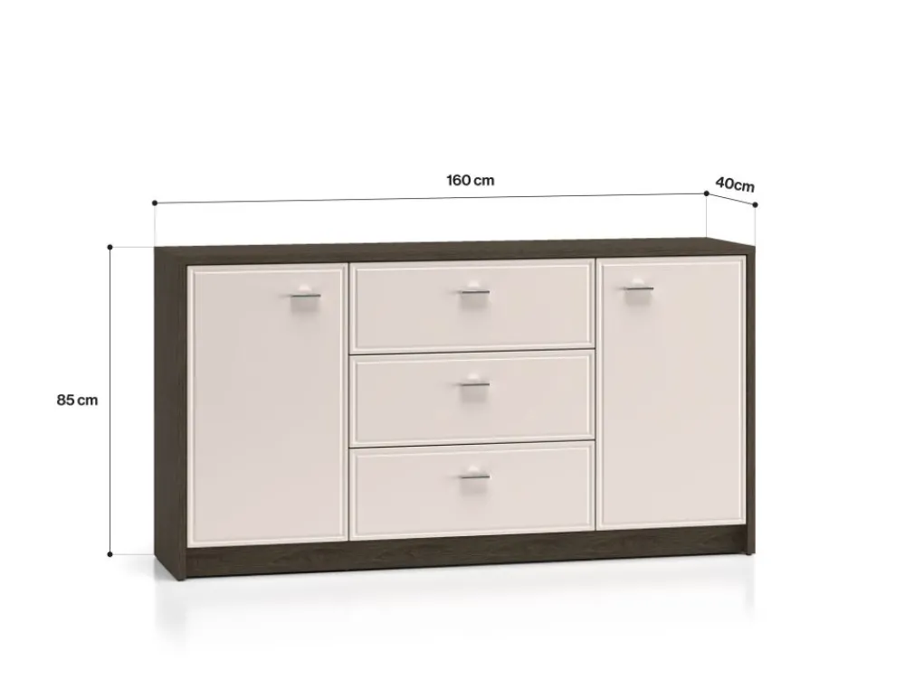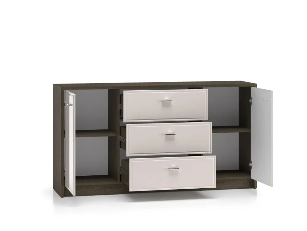 Duża komoda Avante 04 to idealny mebel do przechowywania. Za obojgiem drzwi kryją się łącznie cztery pojemne wnęki. Przechowasz w nich ubrania, ręczniki czy pościel. Środek mebla tworzą trzy głębokie szuflady, które zapewnią odpowiednią ilość miejsca na dokumenty, obrusy lub inne domowe tekstylia. Komoda będzie świetnym dopełnieniem Twojego salonu lub sypialni. Szeroki blat będzie idealnym miejscem do wyeksponowania eleganckich wazonów, pamiątek z podróży lub innych ulubionych gadżetów. Wybierz komodę Avante i zachowaj porządek w swoim wnętrzu. • Piękny design i wyjątkowa funkcjonalność. • Szuflady z funkcją pełnego wysuwu oraz wzmocnionym dnem. • Zawiasy z funkcją cichego domykania.