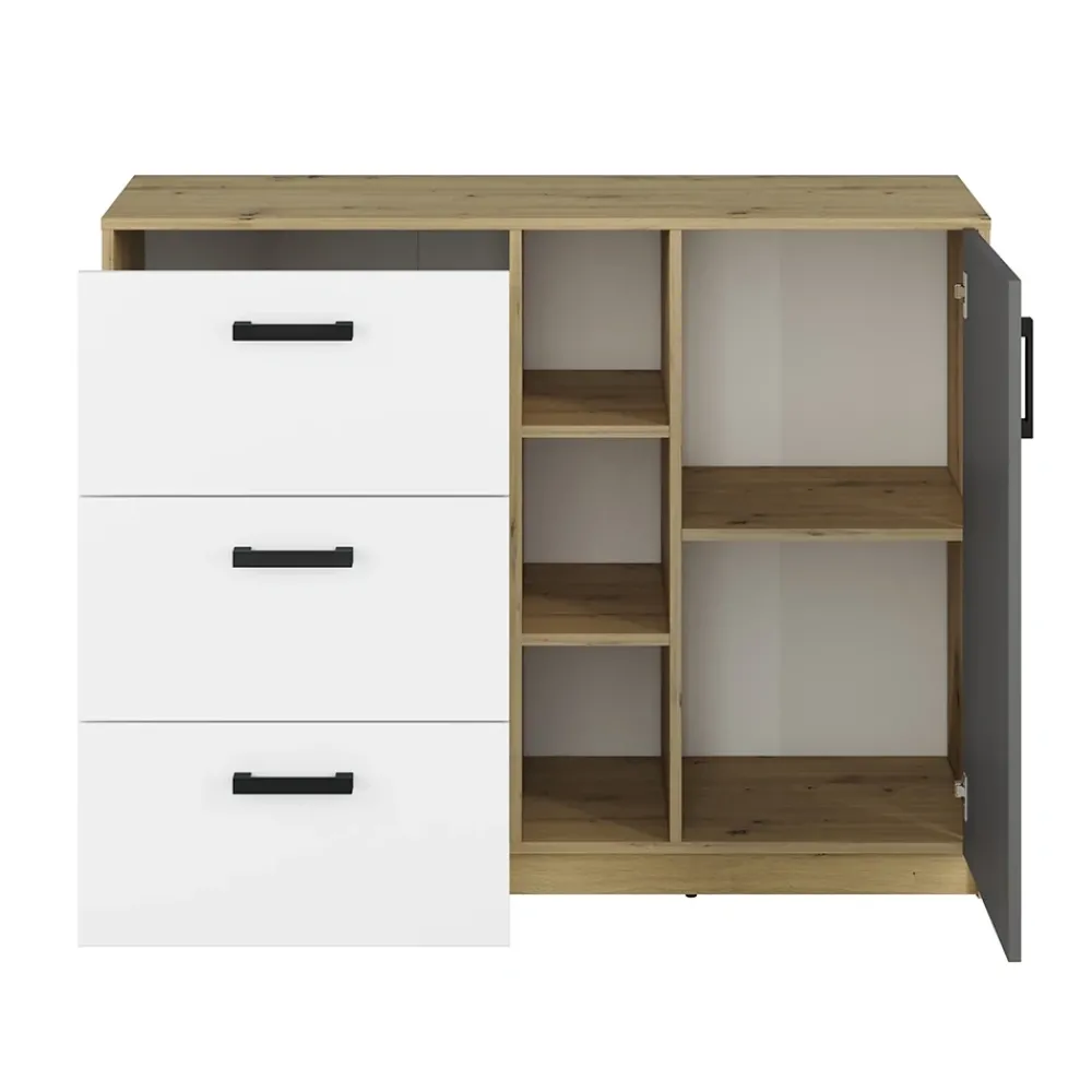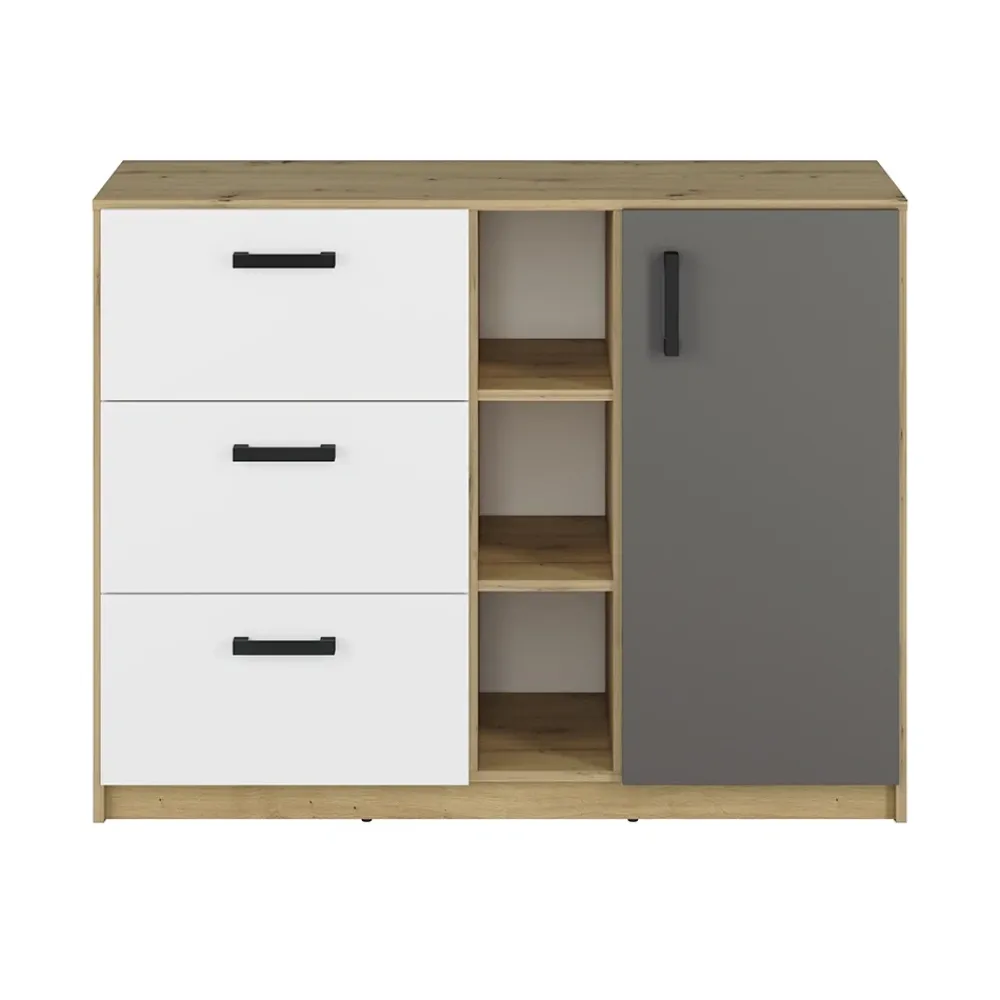 Pojemne wnętrze komody FINI 06 umożliwia przechowywanie podręczników, zeszytów oraz akcesoriów hobbystycznych nastolatka. To mebel, który rośnie razem z potrzebami młodego użytkownika i sprawdza się na każdym etapie nauki. Dzięki funkcjonalnemu układowi przechowywania łatwo utrzymać porządek nawet przy intensywnym użytkowaniu. Komoda wspiera codzienną rutynę, oszczędzając czas i nerwy.