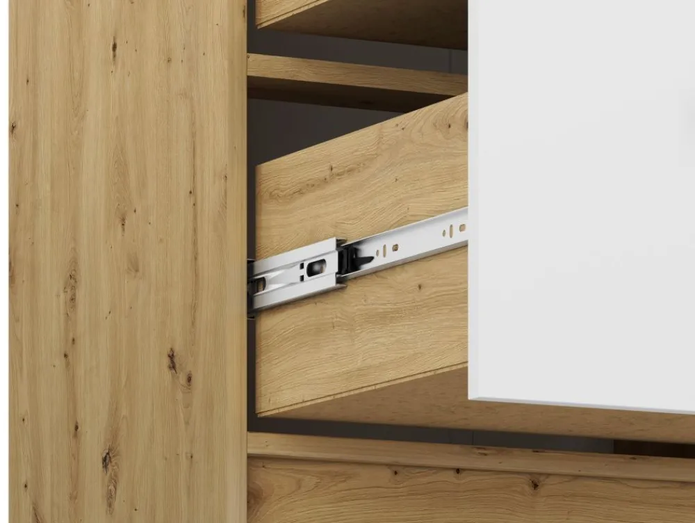 Wysokiej jakości płyta laminowana zastosowana w komodzie FINI 06 jest odporna na zarysowania, wilgoć oraz wysoką temperaturę. Obrzeża ABS skutecznie zabezpieczają krawędzie, zwiększając trwałość mebla w pokoju nastolatka. Solidne wykonanie gwarantuje stabilność oraz bezpieczeństwo użytkowania na co dzień. Wybierając komodę FINI 06, inwestujesz w mebel, który zachowa swój wygląd i funkcjonalność przez długie lata.