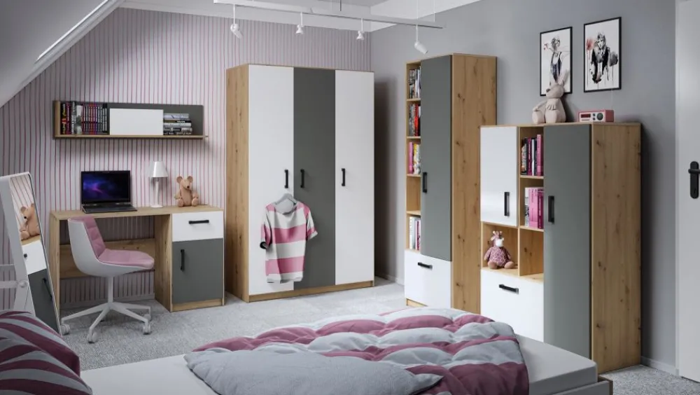Nowoczesny regał młodzieżowy, który porządkuje przestrzeń