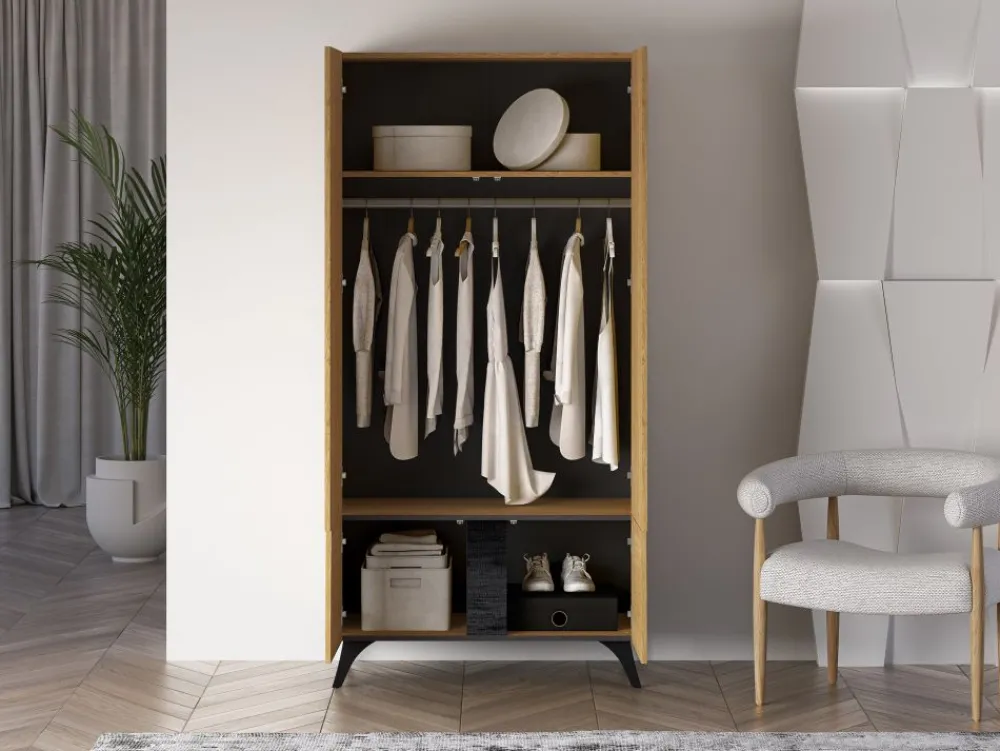 Szafa Toscania 01 została zaprojektowana z dbałością o każdy detal. Wyprofilowane, metalowe nóżki zapewniają stabilność konstrukcji, a jednocześnie dodają meblowi lekkości i charakteru. Wygodny system otwierania push to open eliminuje konieczność stosowania tradycyjnych uchwytów, co ułatwia codzienne korzystanie. To nowoczesna, pojemna i stylowa szafa, która doskonale sprawdzi się zarówno w sypialni, garderobie, jak i w salonie jako elegancki element aranżacji.