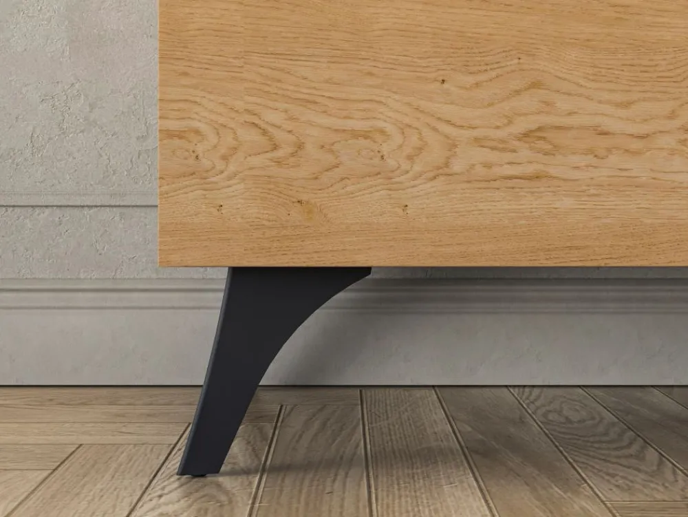 Szafa ML Meble Toscania wyróżnia się unikalnym połączeniem dekoru Baltic Dune o naturalnym, dębowym usłojeniu z kontrastującym odcieniem Jesionu Portland. Fronty bez uchwytów, wzbogacone o funkcję push to open, podkreślają nowoczesny charakter mebla. Dodatkowo, subtelnie zaokrąglone krawędzie oraz czarna, szklana wstawka w połysku nadają szafie elegancji i wyjątkowego stylu. To propozycja, która doskonale wpisuje się w aktualne trendy wnętrzarskie, łącząc funkcjonalność z estetyką.