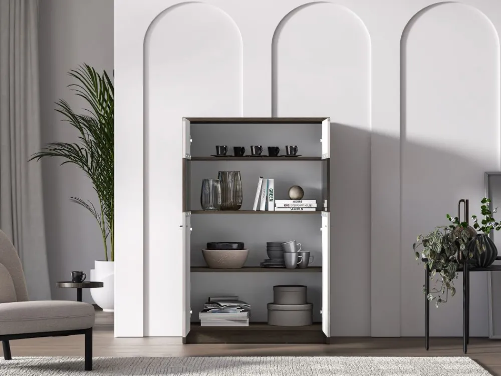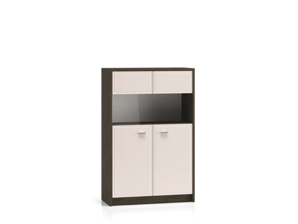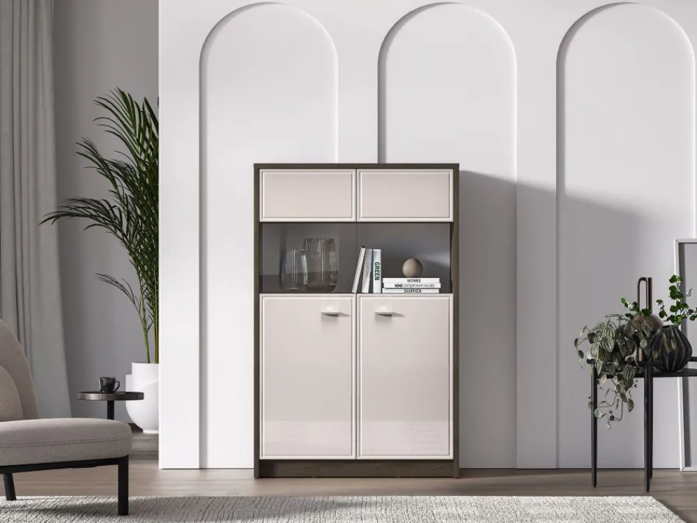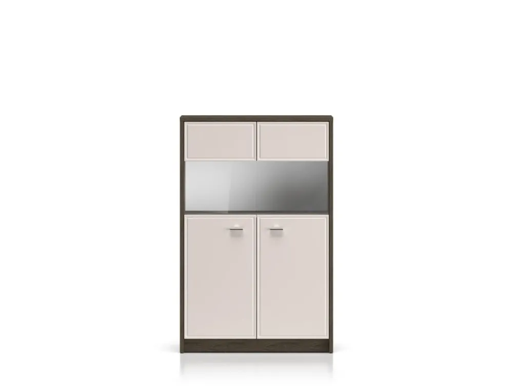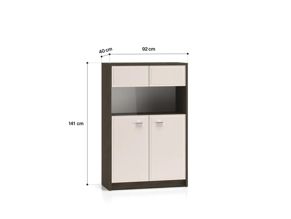 Witryna Avante 03 to mebel, dzięki któremu przechowasz i wyeksponujesz swoje ulubione przedmioty. Mebel podzielony jest na kilka stref. Dolną część tworzą dwie szerokie wnęki, niedostępne dla oczu Twoich gości. Schowasz w nich obrusy czy ręczniki. Kolejna część mebla to przestrzeń za szklanymi szybami. Dzięki nim wyeksponujesz ulubione, porcelanowe filiżanki czy piękną, stylowa zastawę. Bryłę wieńczy kolejna zamykana przestrzeń idealna na dokumenty czy domowe tekstylia. Wybierz witrynę Avante i zachowaj porządek w swoim wnętrzu. • Piękny design i wyjątkowa funkcjonalność. • Podświetlenie witryn w opcji za dopłatą. • Zawiasy z funkcją cichego domykania.