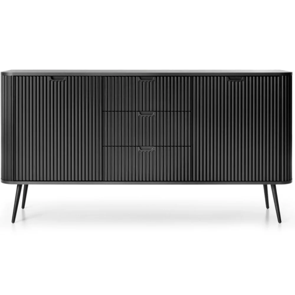 Komoda Zova to kwintesencja elegancji i nowoczesności, która przyciągnie wzrok każdego gościa. Jej nowoczesny design i harmonijna forma łączą się z wyrafinowanymi detalami, tworząc stylowy akcent w każdym salonie. Delikatnie zaokrąglone krawędzie dodają subtelności, a fronty zdobione ryflowanym wzorem wprowadzają niepowtarzalny charakter i głębię wizualną.