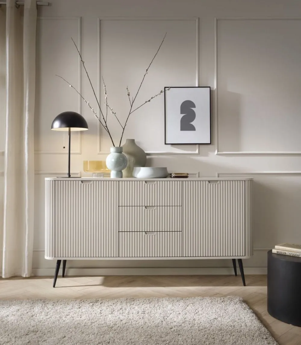 Komoda do salonu z lamelami Zova – elegancja i nowoczesność w Twoim wnętrzu