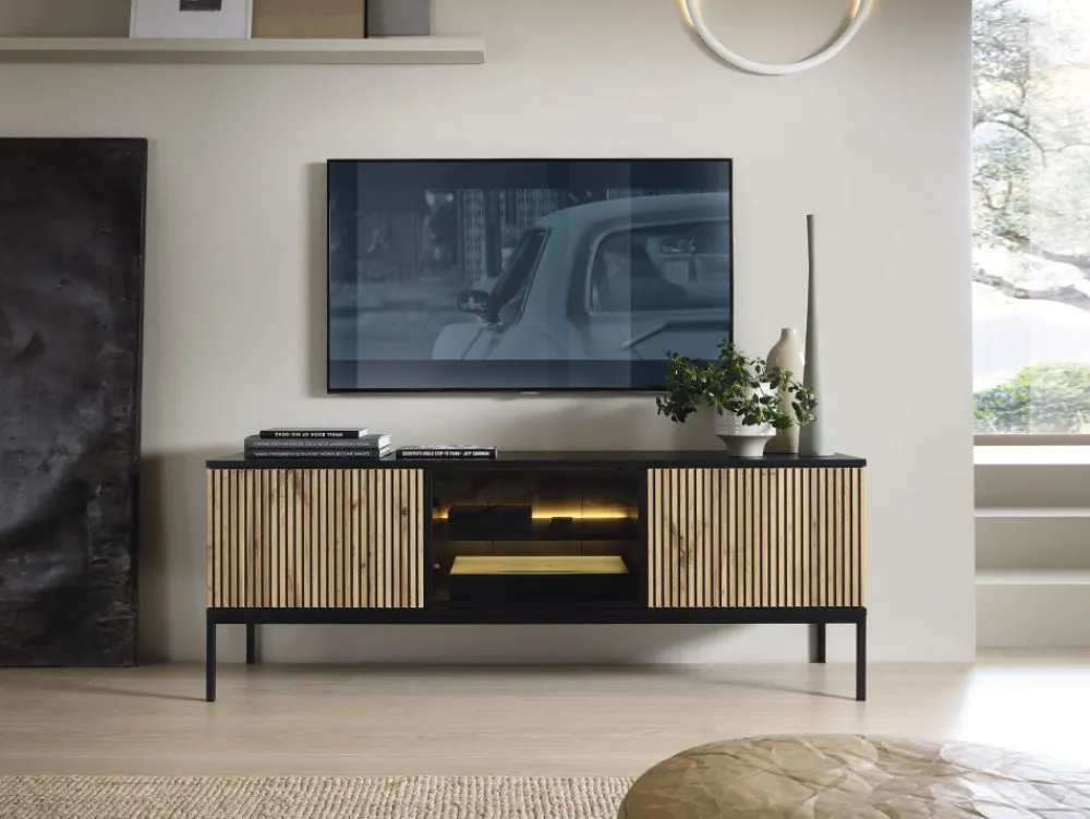Zapraszamy do odkrycia naszej nowoczesnej szafki RTV, która połączy funkcjonalność z wyrafinowanym stylem w Twoim salonie.