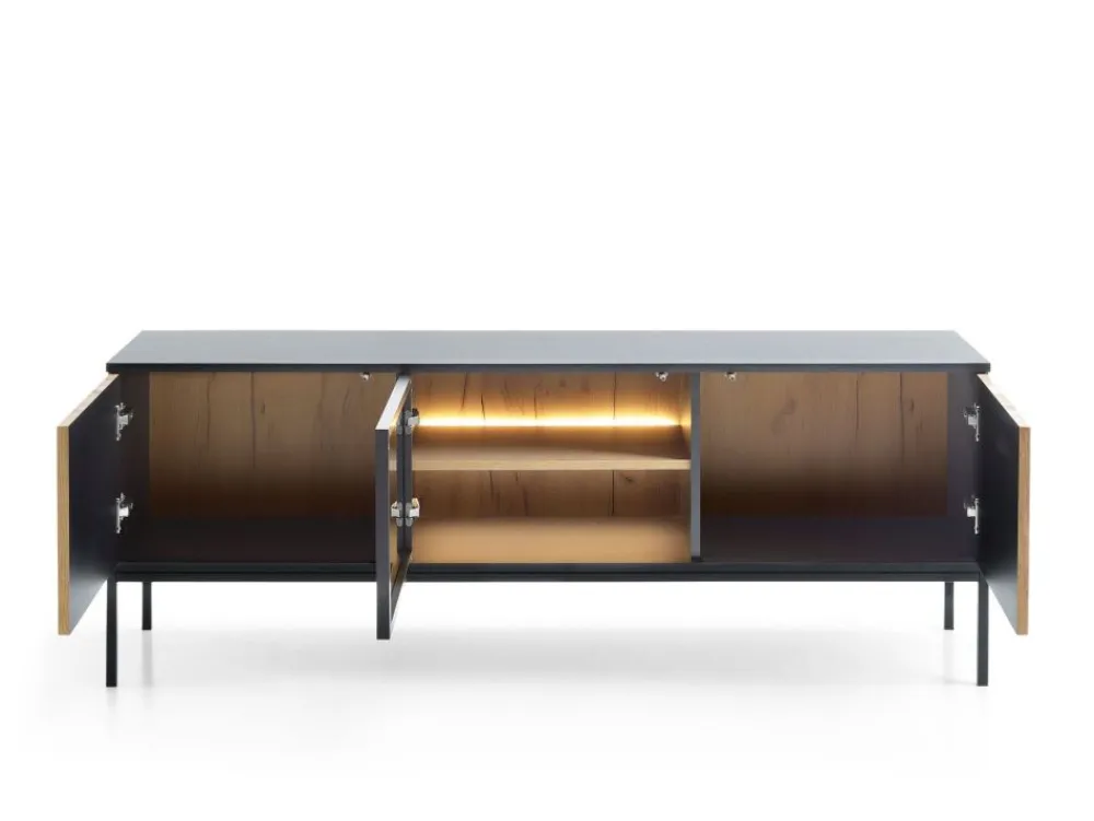 Dodatkowo, wbudowane oświetlenie LED nadaje szafce RTV elegancki wygląd i podkreśla jej nowoczesny charakter. Możesz swobodnie dostosować oświetlenie do nastroju w pomieszczeniu.